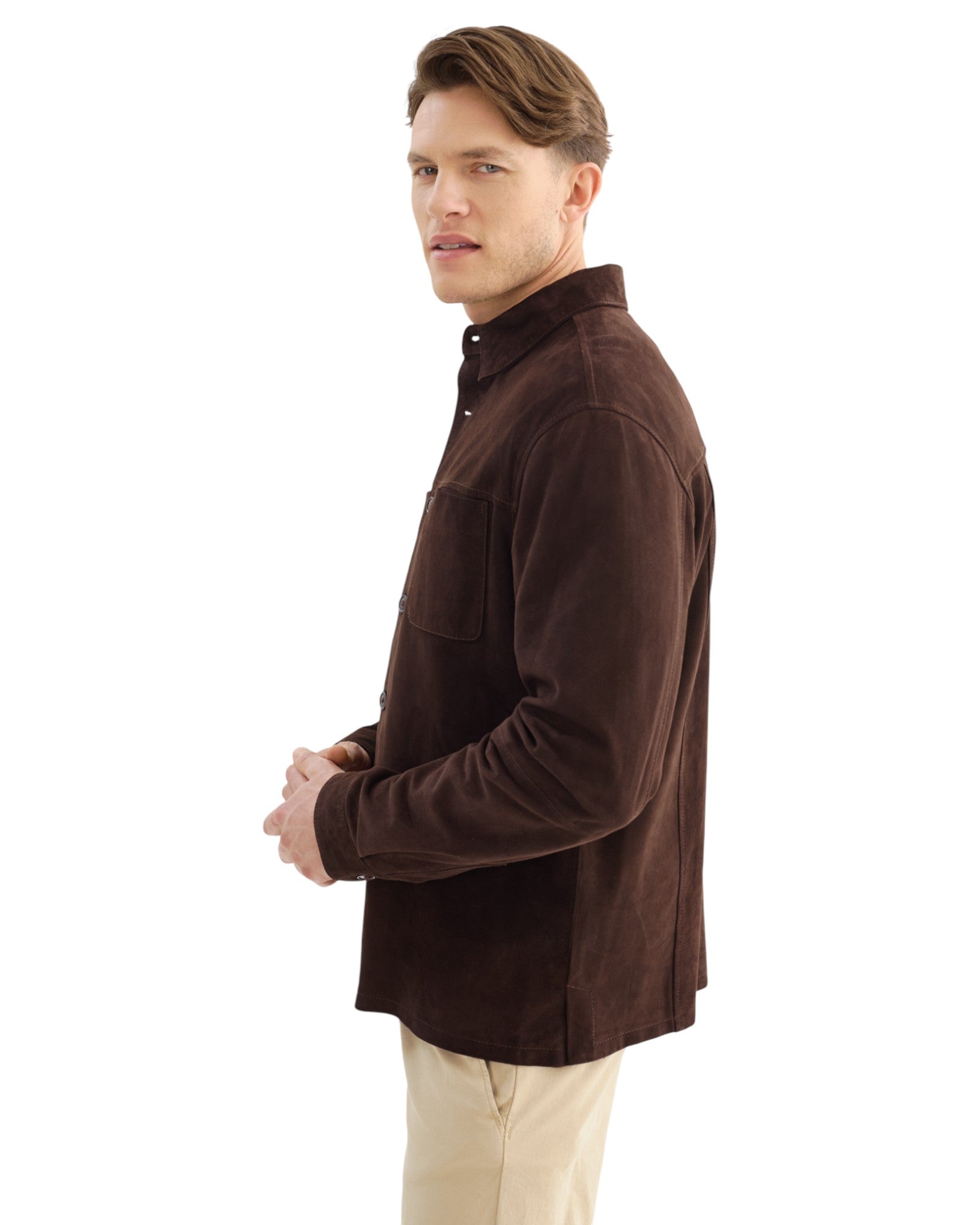 Introducing the BROCK Suede Shirt, a harmonious blend of refined style and casual sophistication. Crafted from premium suede, this shirt features a classic button-down front and chest pockets, combining functional design with a sleek, modern aesthetic. Perfect for any occasion, the BROCK Suede Shirt seamlessly transitions from day to night, elevating your wardrobe with its timeless appeal and effortless style.