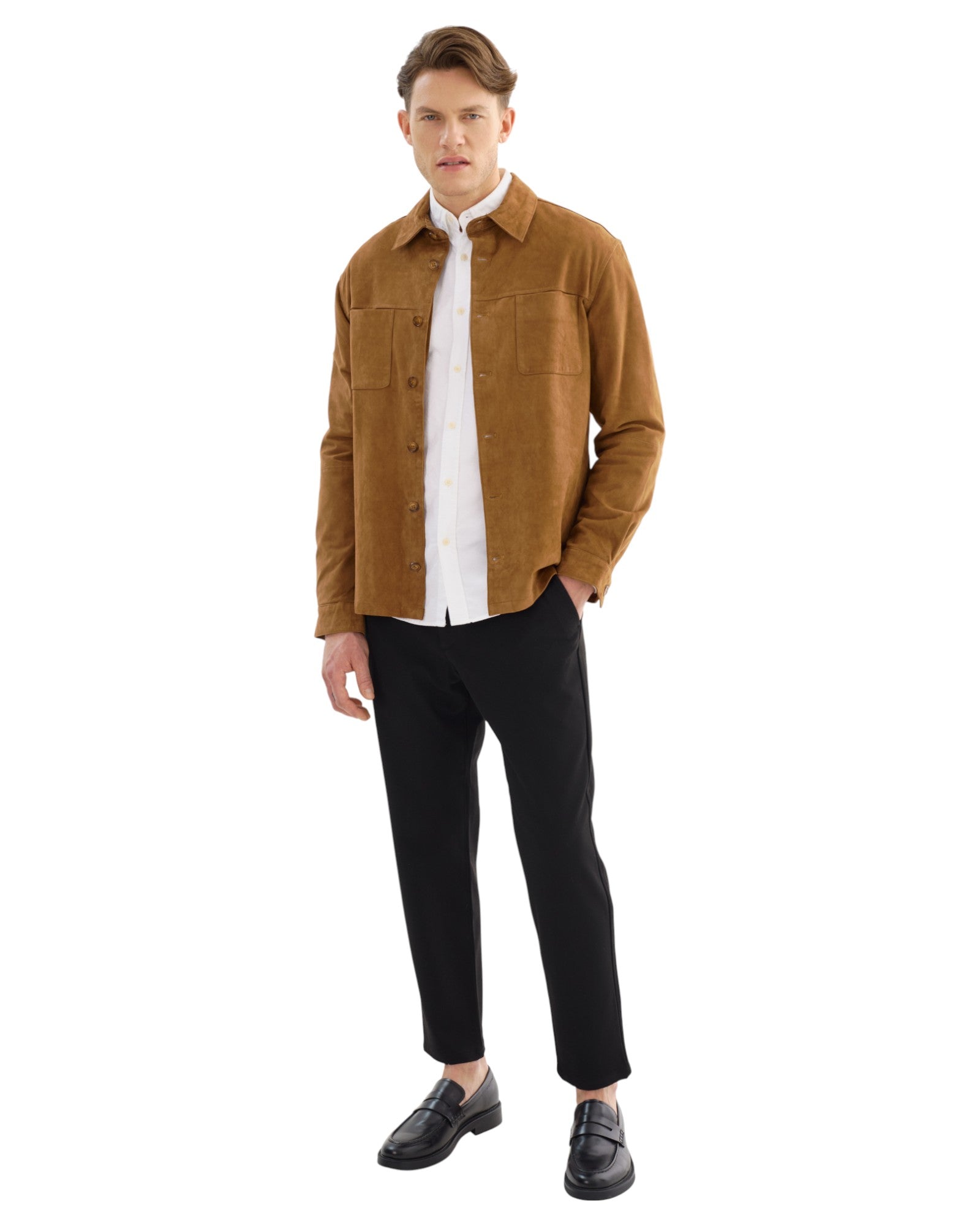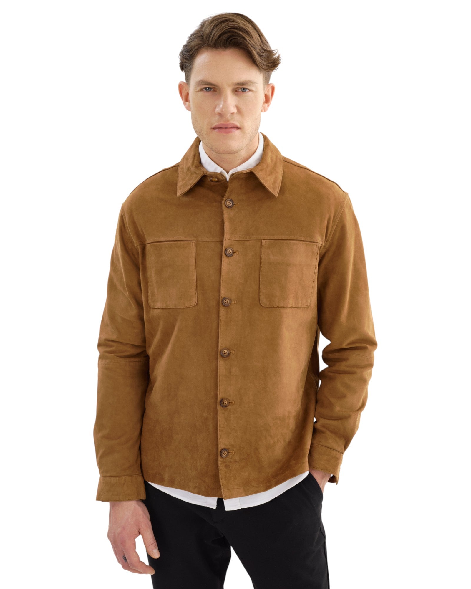 Introducing the BROCK Suede Shirt, a harmonious blend of refined style and casual sophistication. Crafted from premium suede, this shirt features a classic button-down front and chest pockets, combining functional design with a sleek, modern aesthetic. Perfect for any occasion, the BROCK Suede Shirt seamlessly transitions from day to night, elevating your wardrobe with its timeless appeal and effortless style.