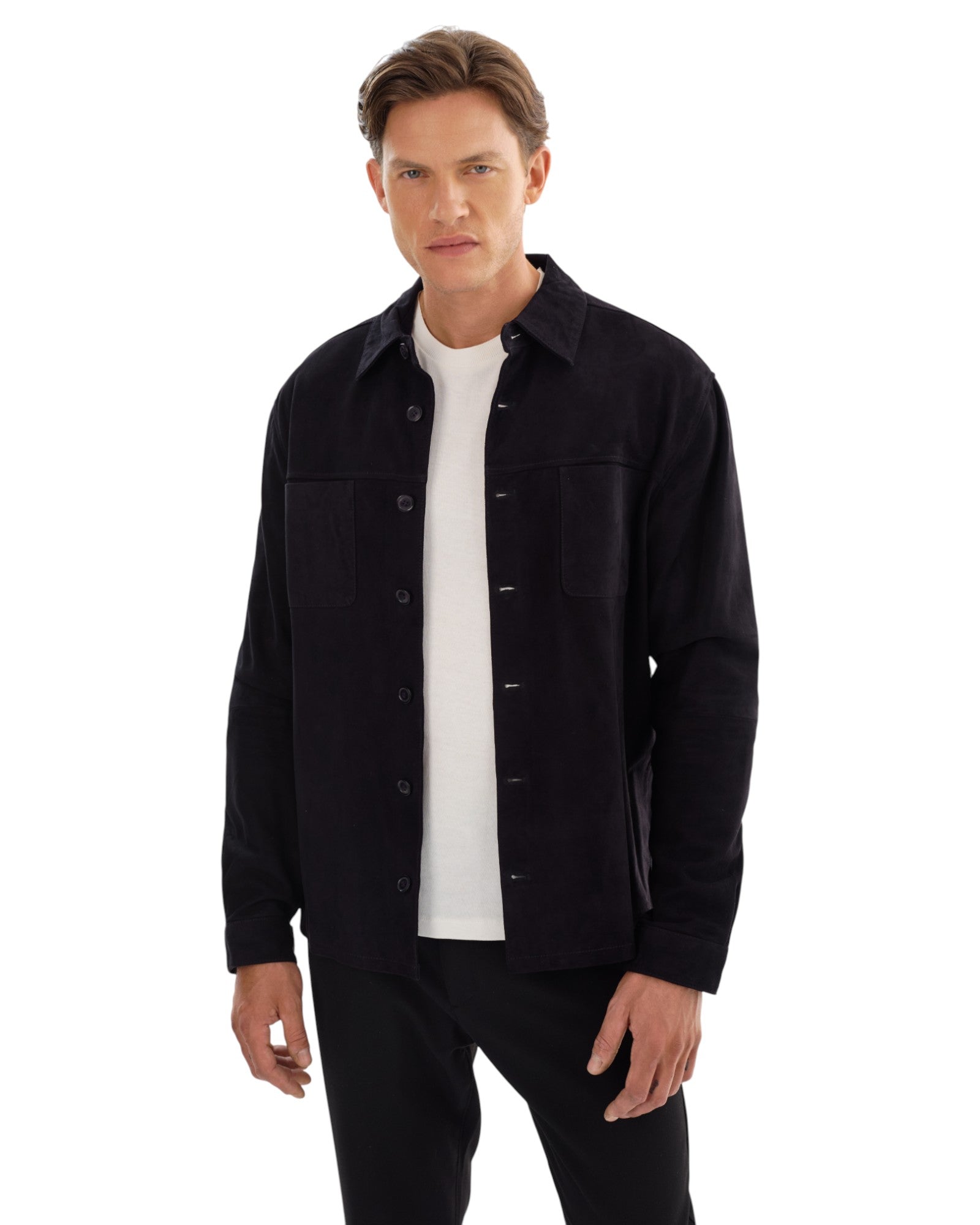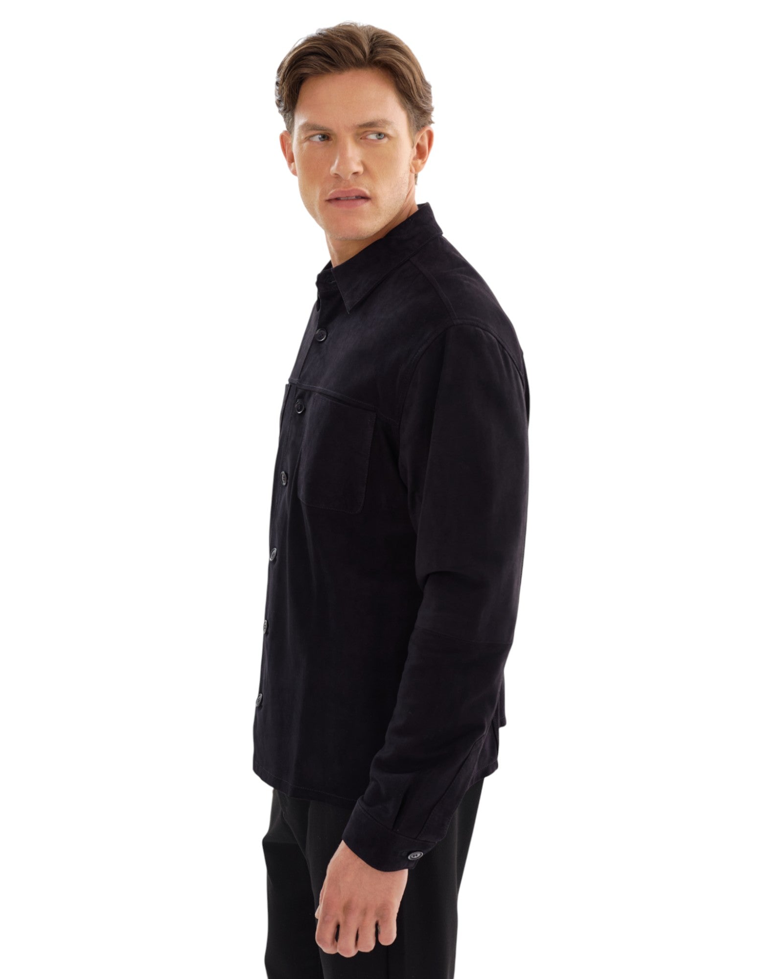 Introducing the BROCK Suede Shirt, a harmonious blend of refined style and casual sophistication. Crafted from premium suede, this shirt features a classic button-down front and chest pockets, combining functional design with a sleek, modern aesthetic. Perfect for any occasion, the BROCK Suede Shirt seamlessly transitions from day to night, elevating your wardrobe with its timeless appeal and effortless style.