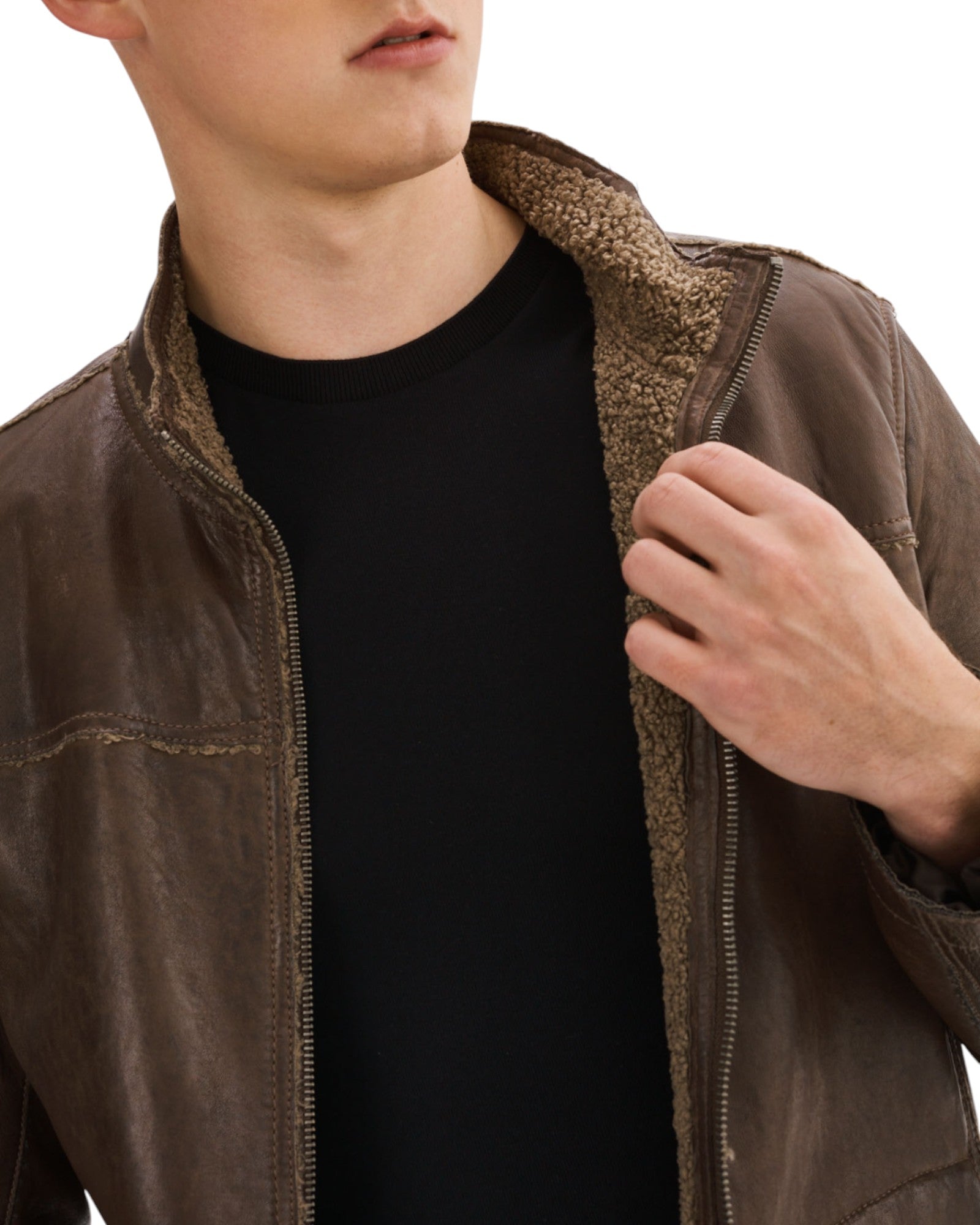 EDWARD-F Leather Jacket with Bonded Faux Shearling Interior