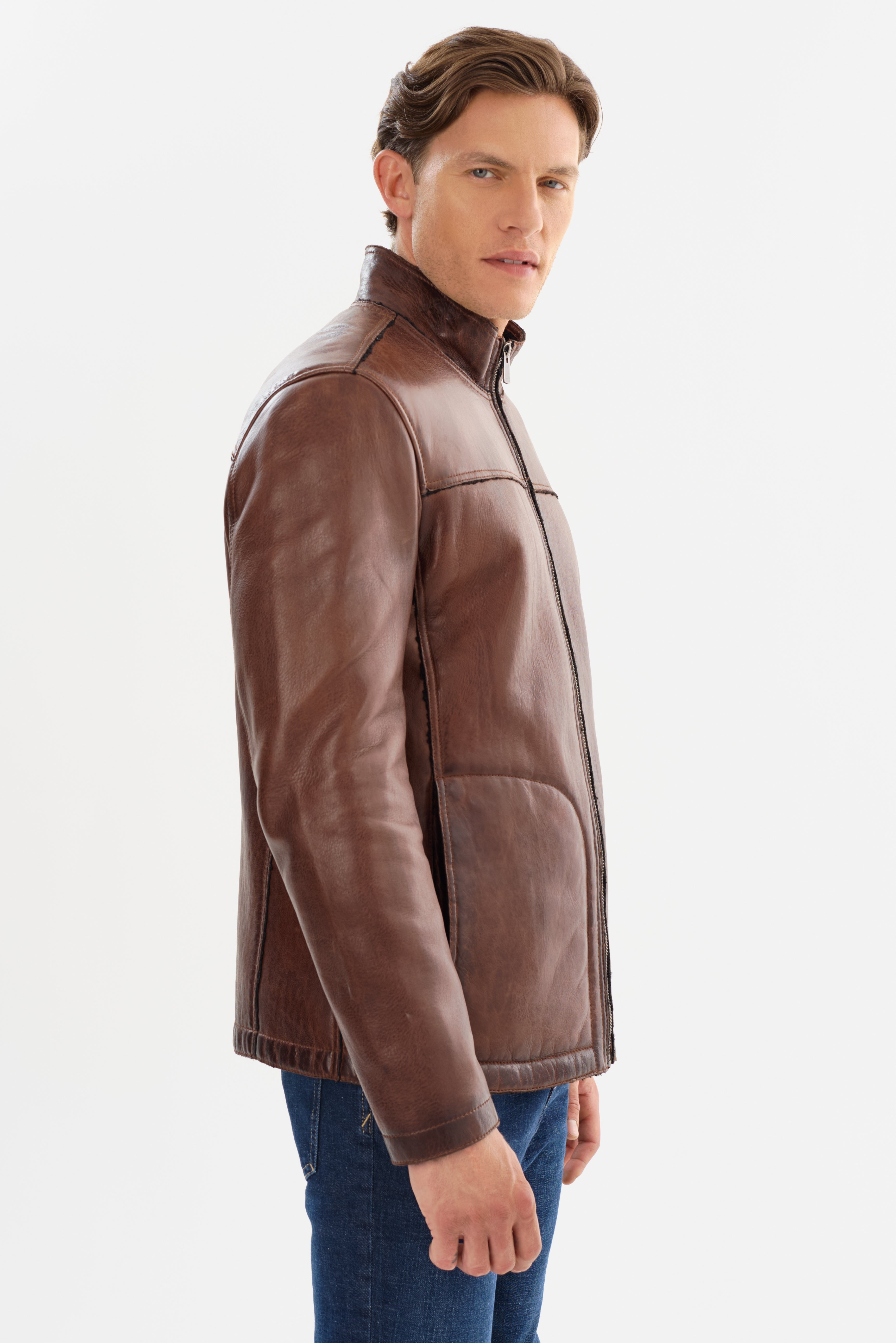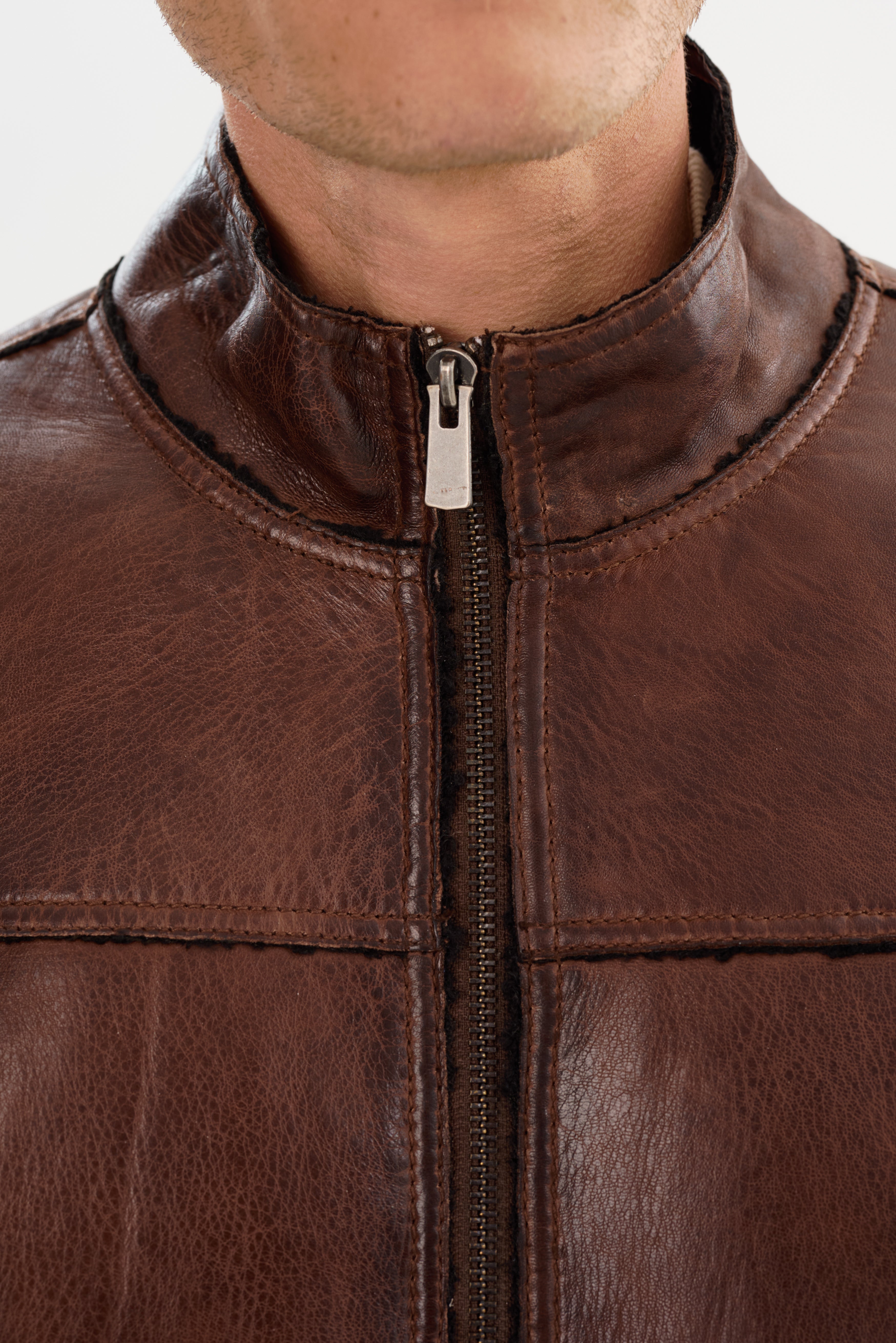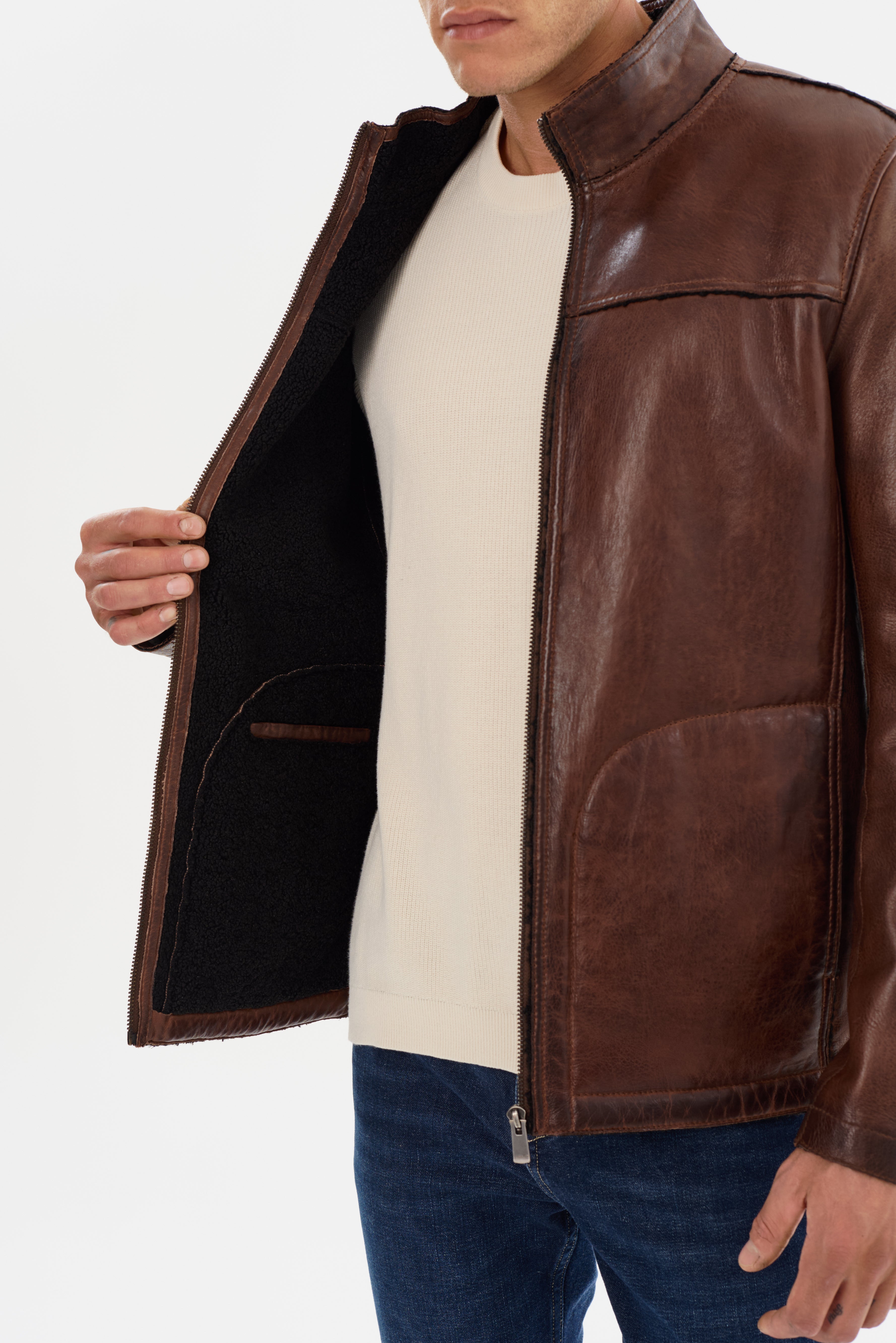 EDWARD-F Leather Jacket with Bonded Faux Shearling Interior