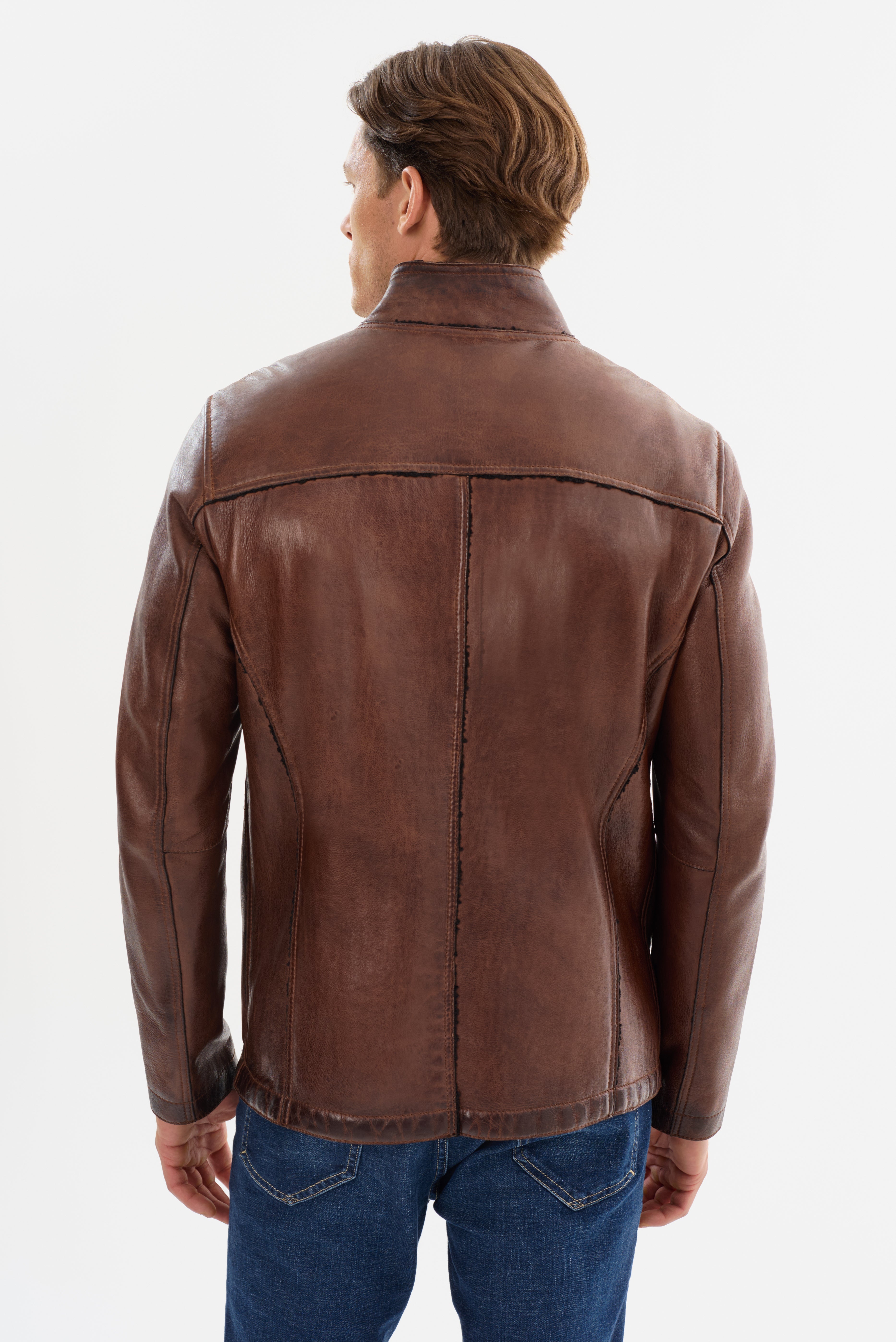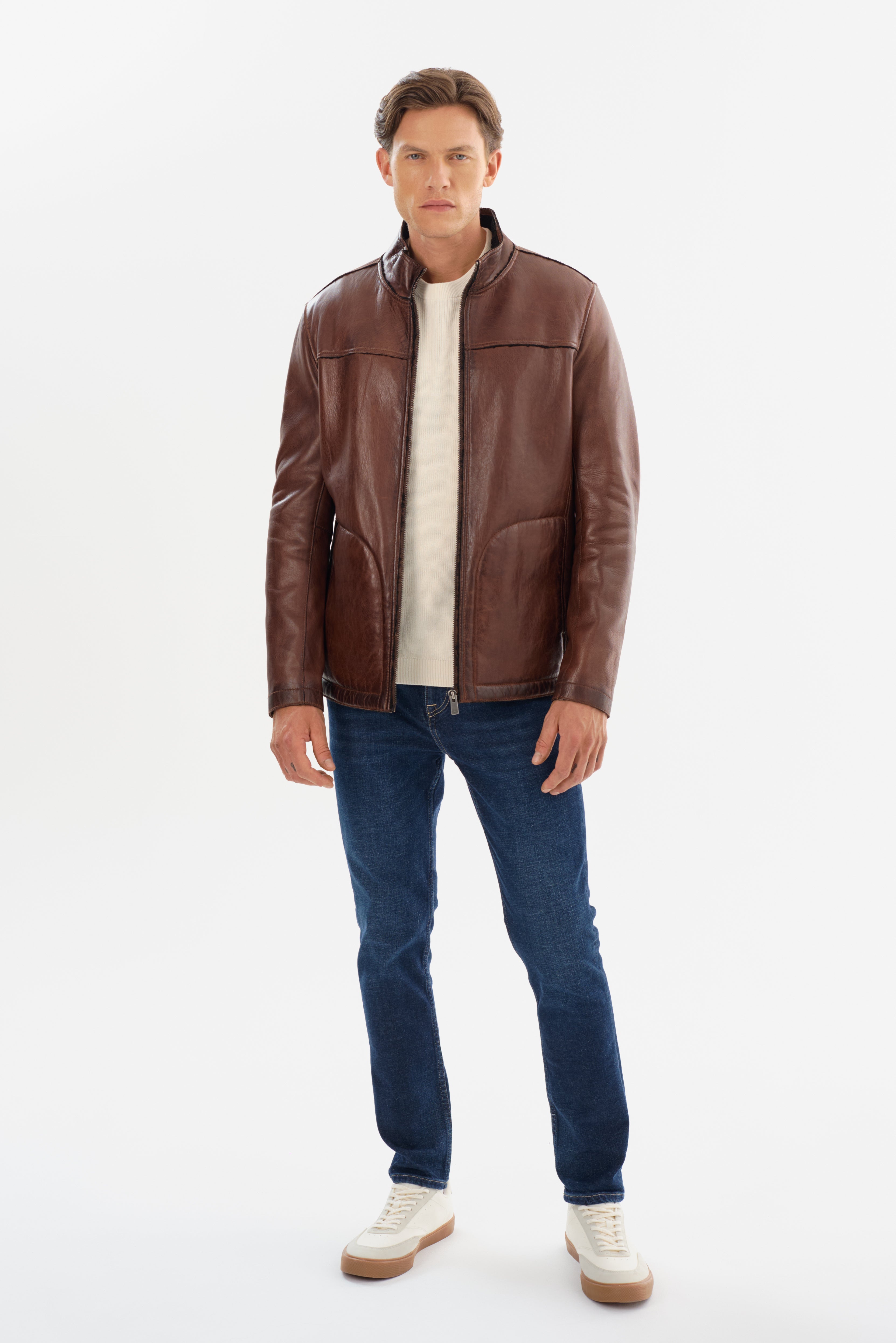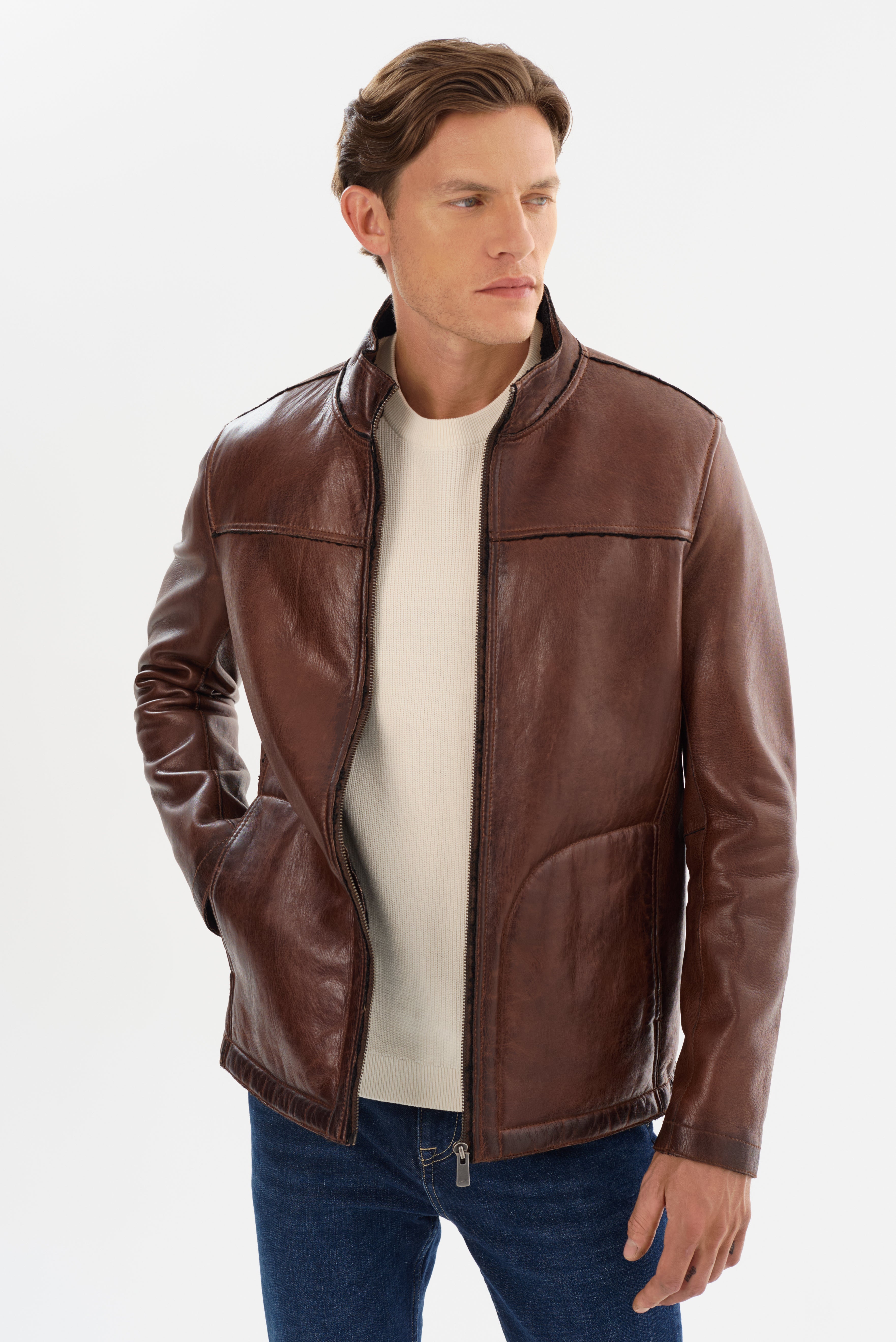 EDWARD-F Leather Jacket with Bonded Faux Shearling Interior