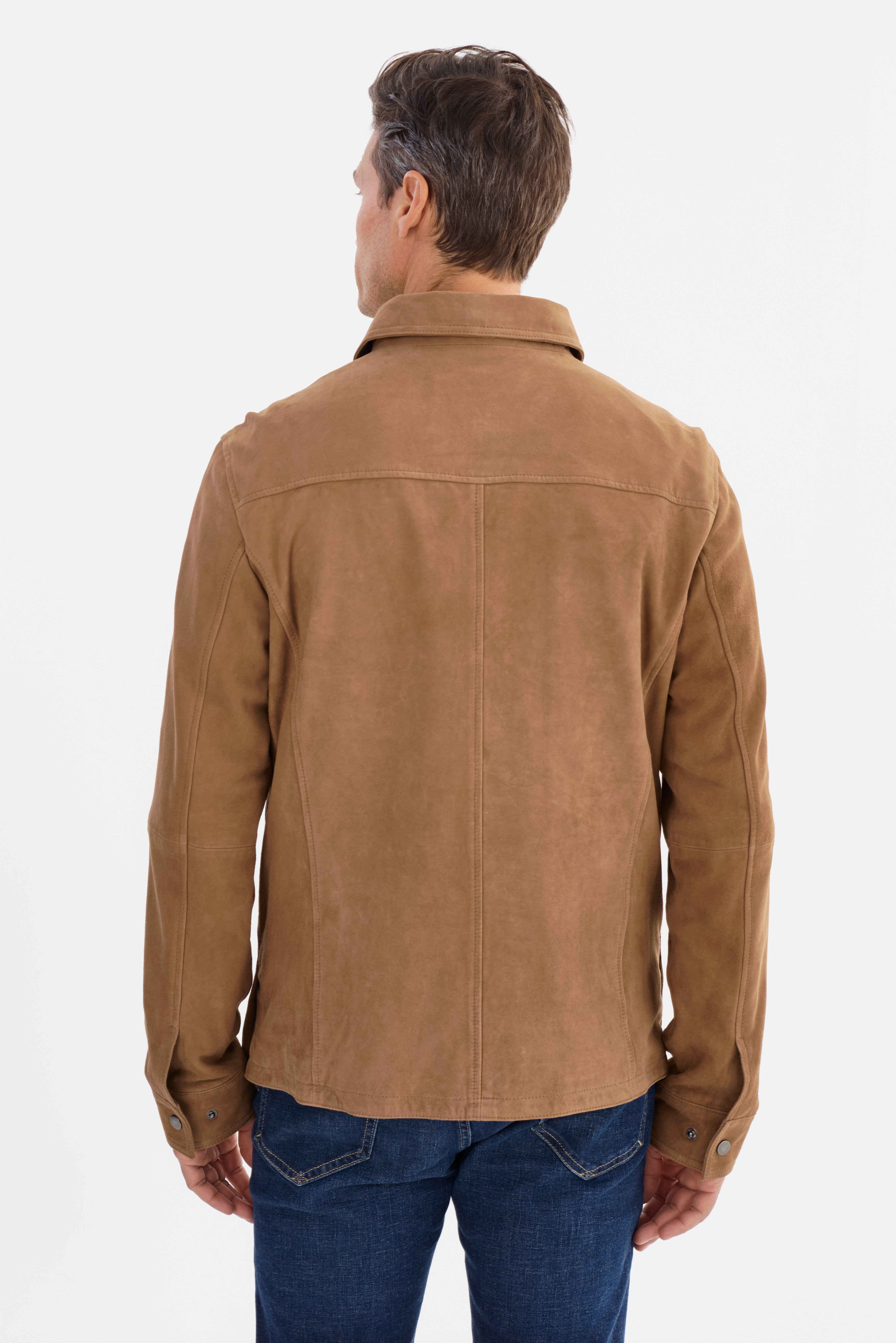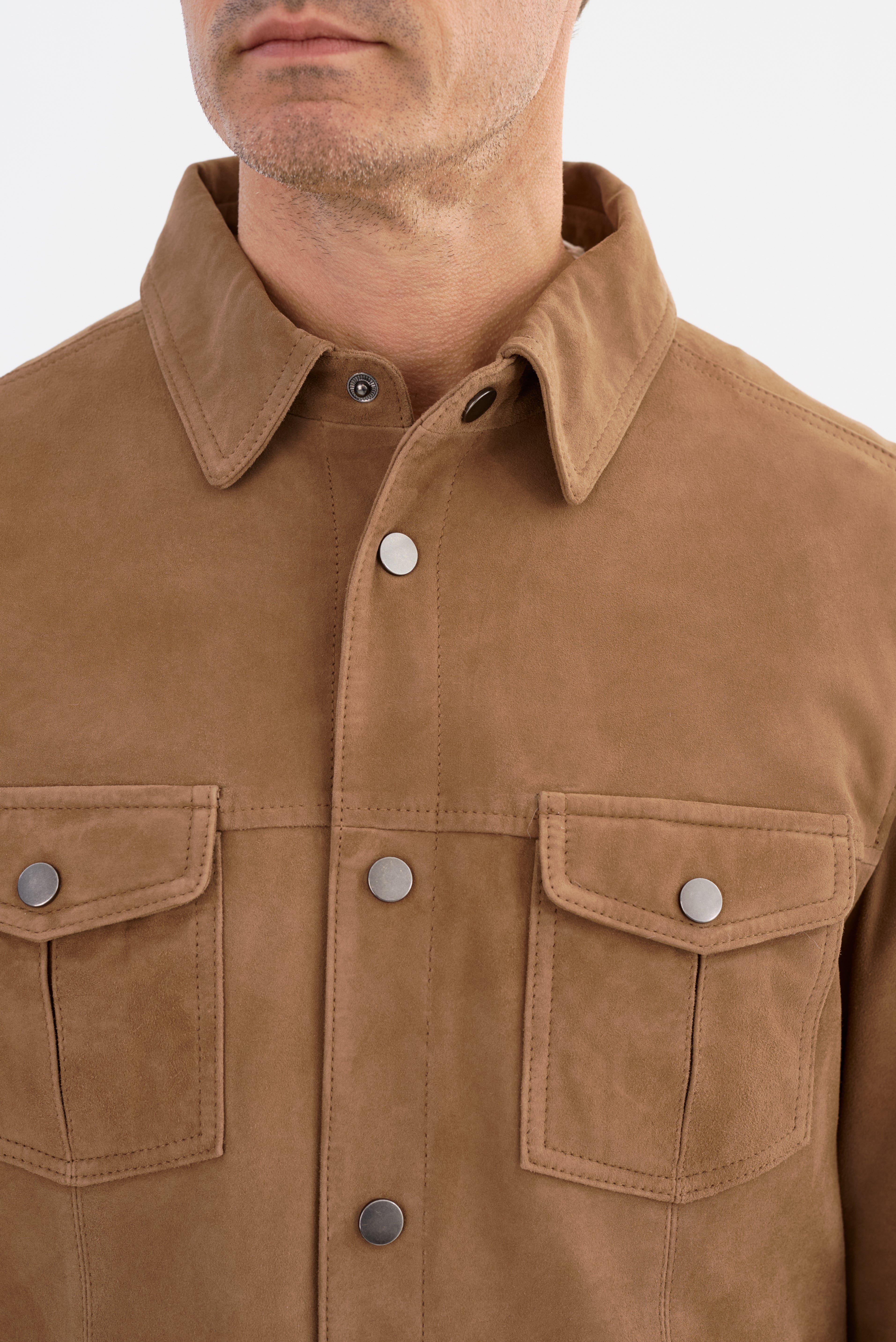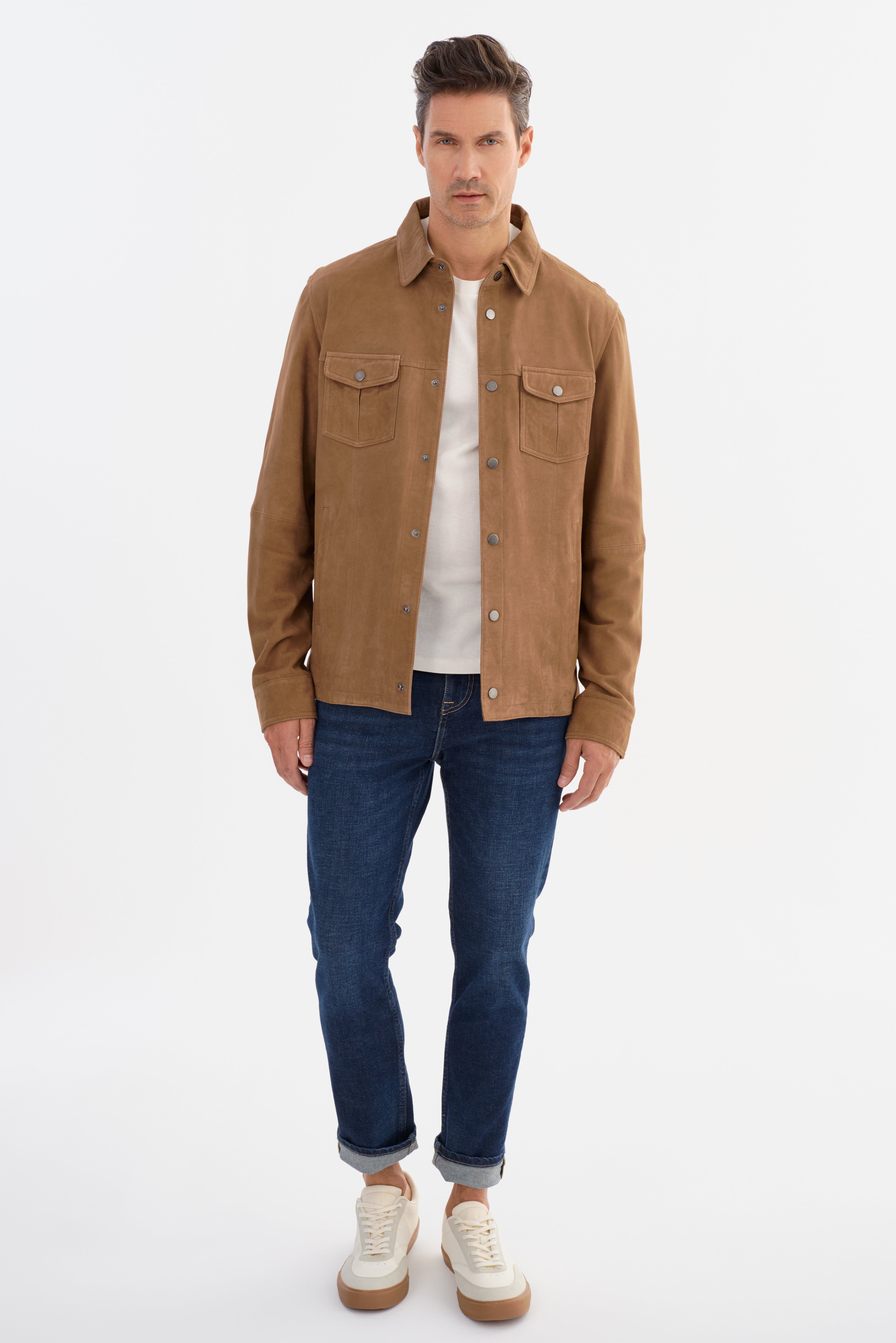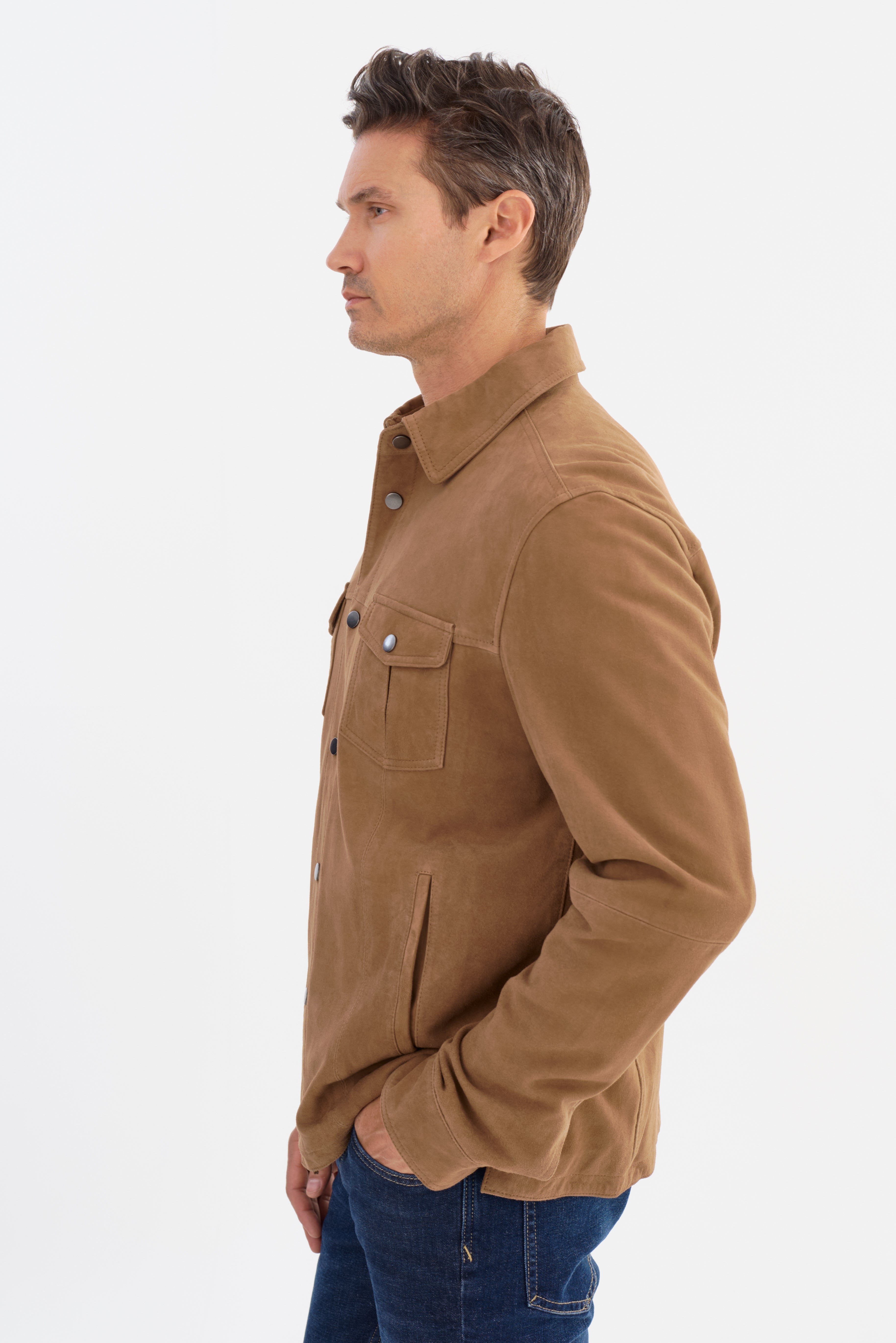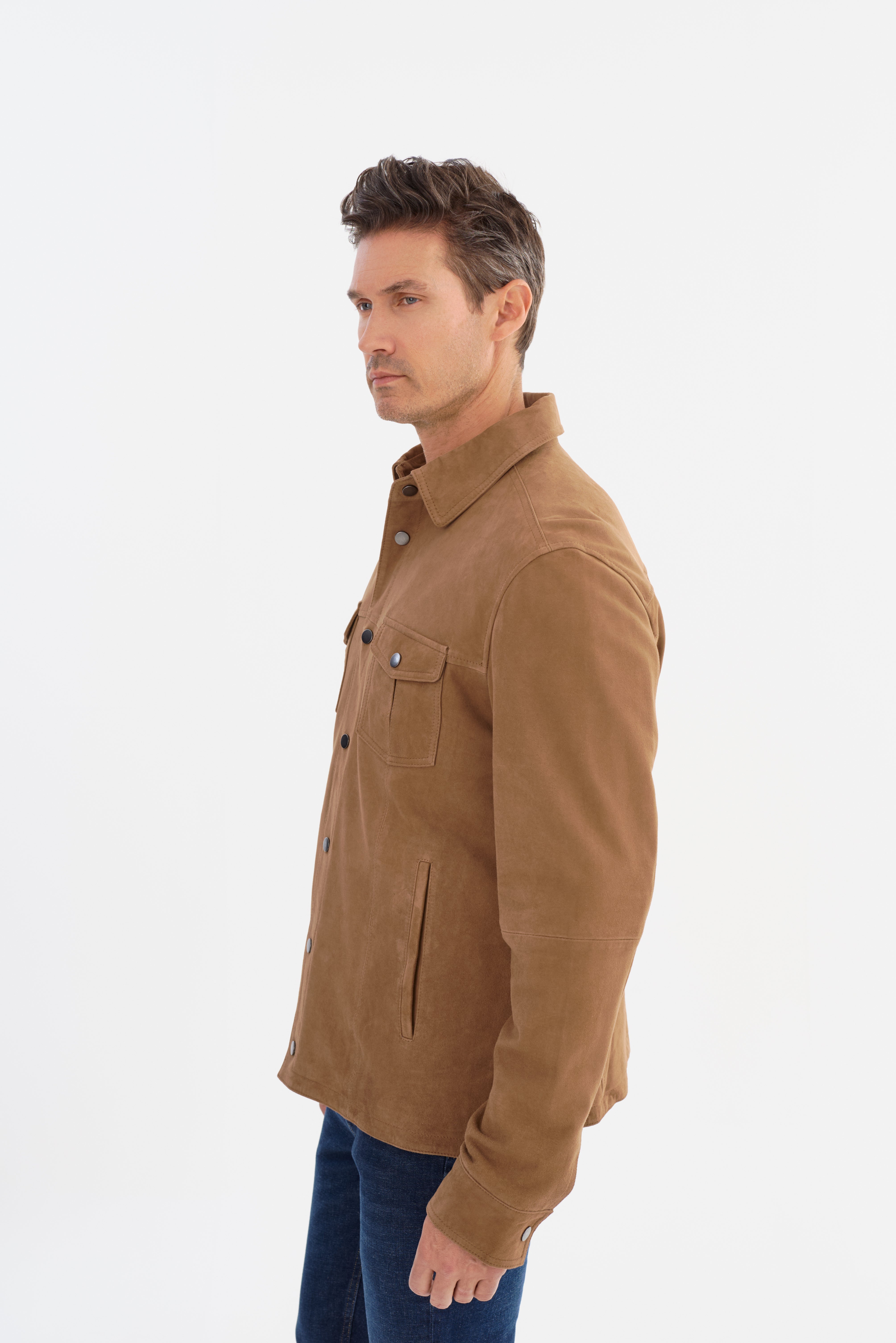 The GAVI Suede Shirt Jacket offers effortless sophistication, blending refined tailoring with a relaxed, modern edge. Crafted from premium goat suede, this versatile piece provides a luxe feel while maintaining a casual appeal. Designed with a structured point collar, snap-button front, and functional chest pockets, it's the perfect layering essential for transitional seasons. Whether dressed up or down, this suede shirt jacket adds understated elegance to any look.