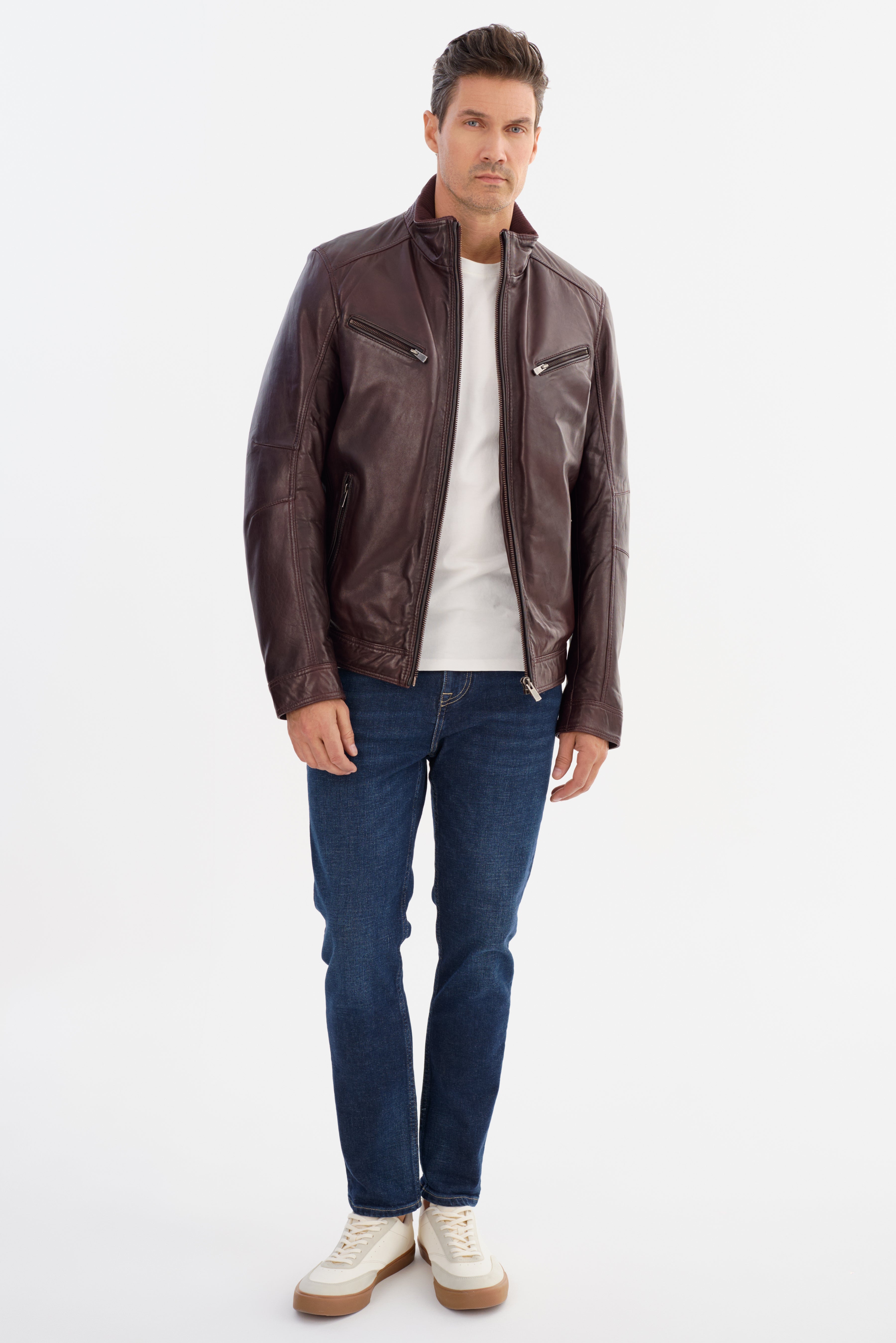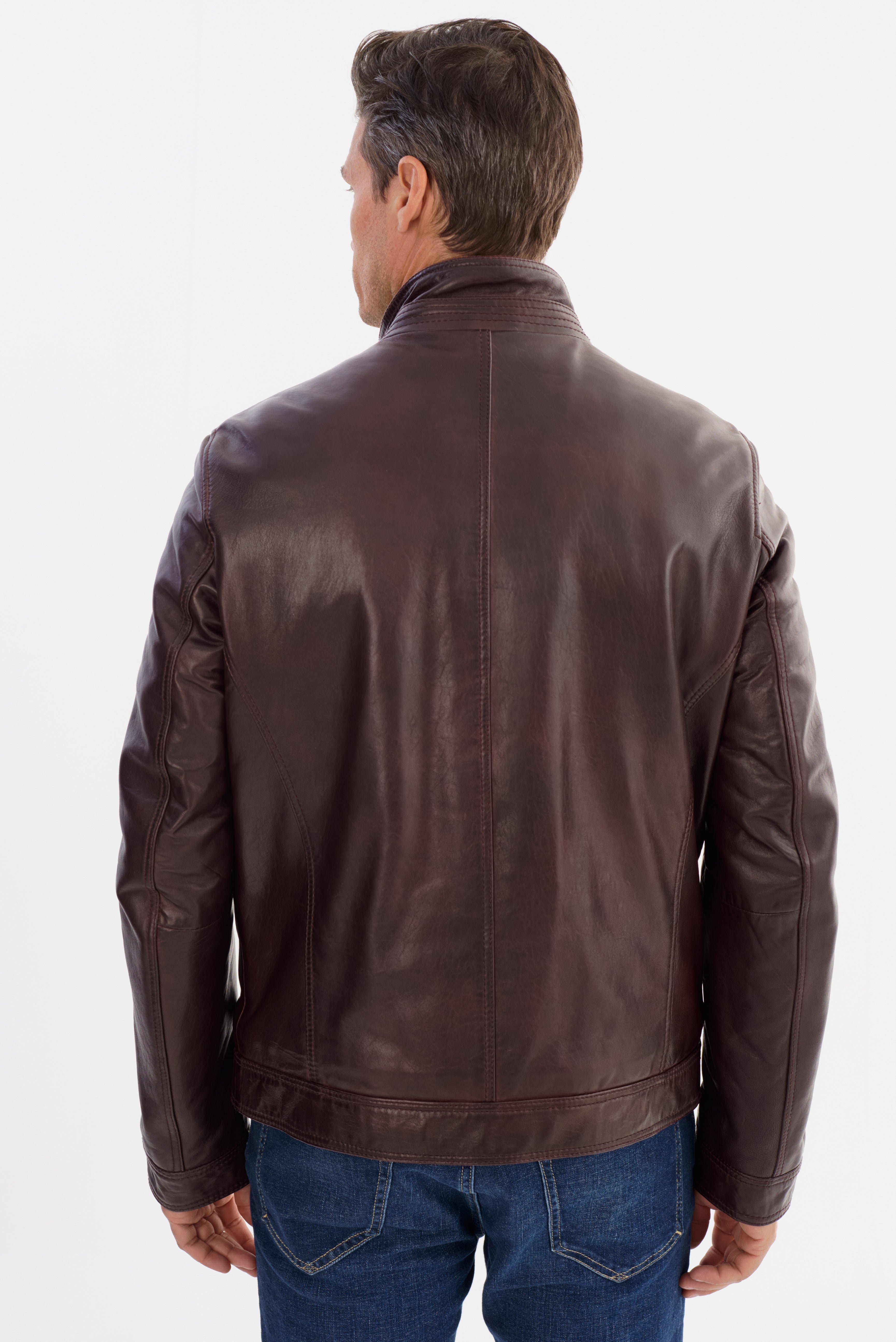 Make a statement with the Gunnar Leather Jacket. Expertly crafted from premium leather and featuring a quilted interior, this jacket is both robust and refined. Its stand-up collar and contrast leather piping add a touch of contemporary style to its timeless design. Experience the perfect balance of style and function with the Gunnar, this jacket will keep you looking sharp and feeling comfortable.