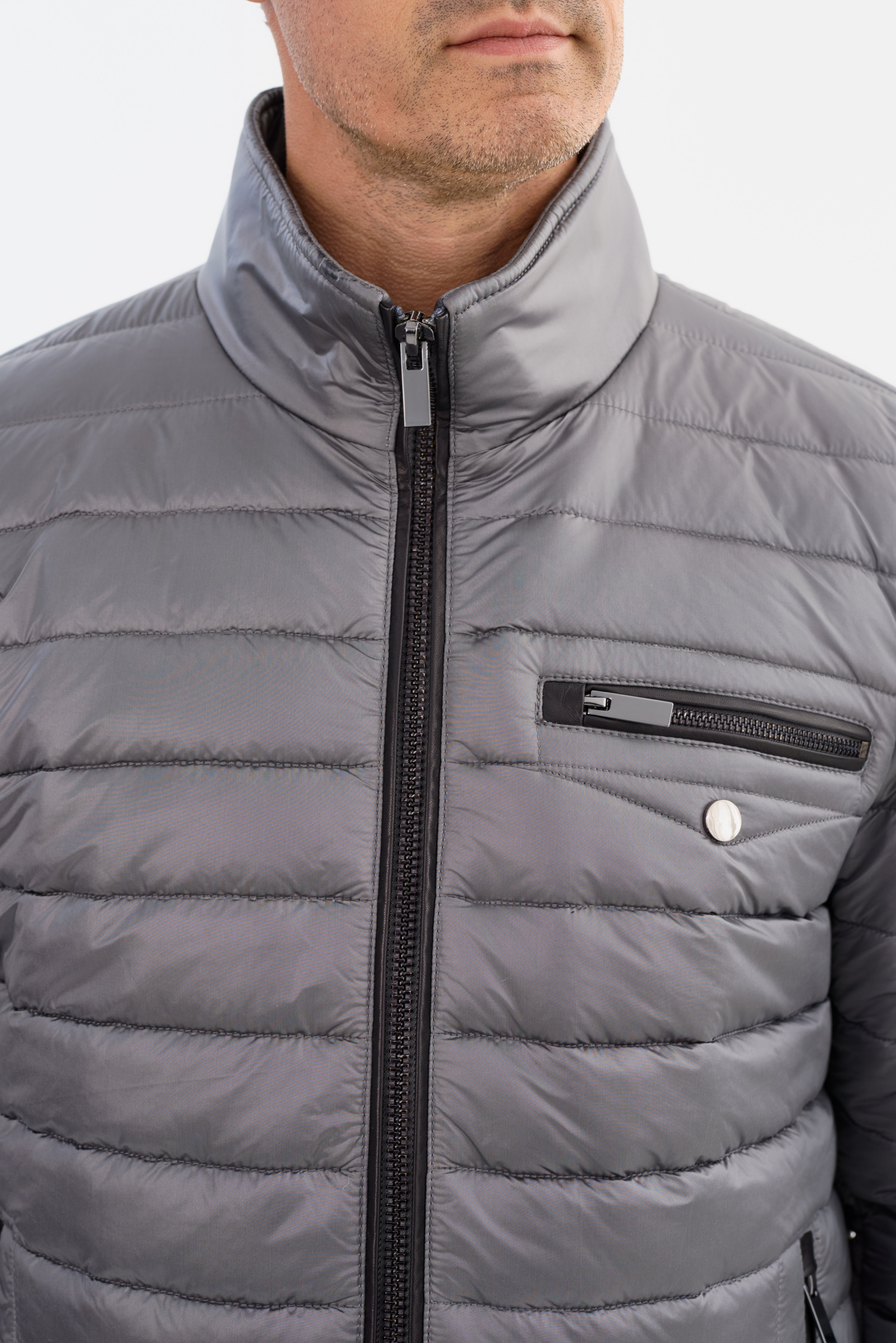 Experience the perfect balance of function and style with the Iowa Puffer Jacket. Featuring a durable nylon puffer jacket with leather trims and a sleek stand-up collar, this jacket will keep you looking sharp while protecting you from the elements.