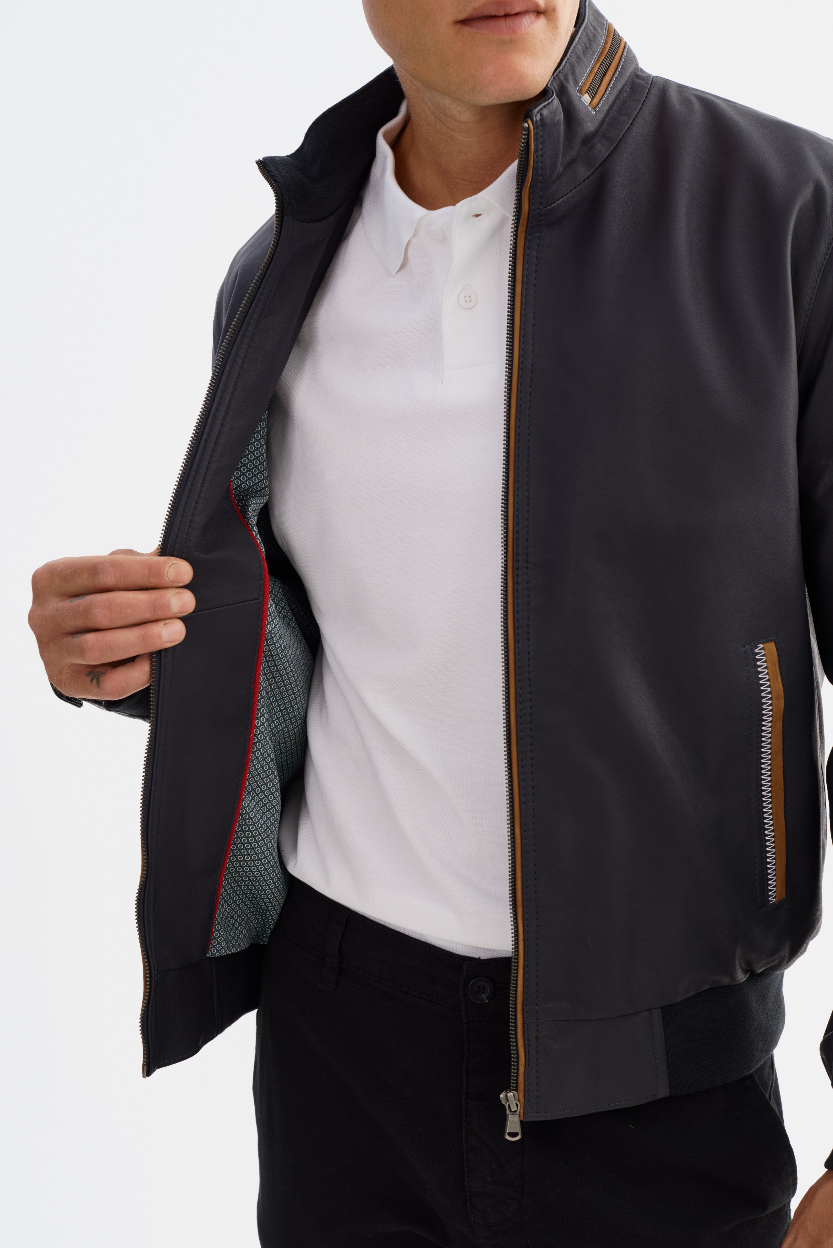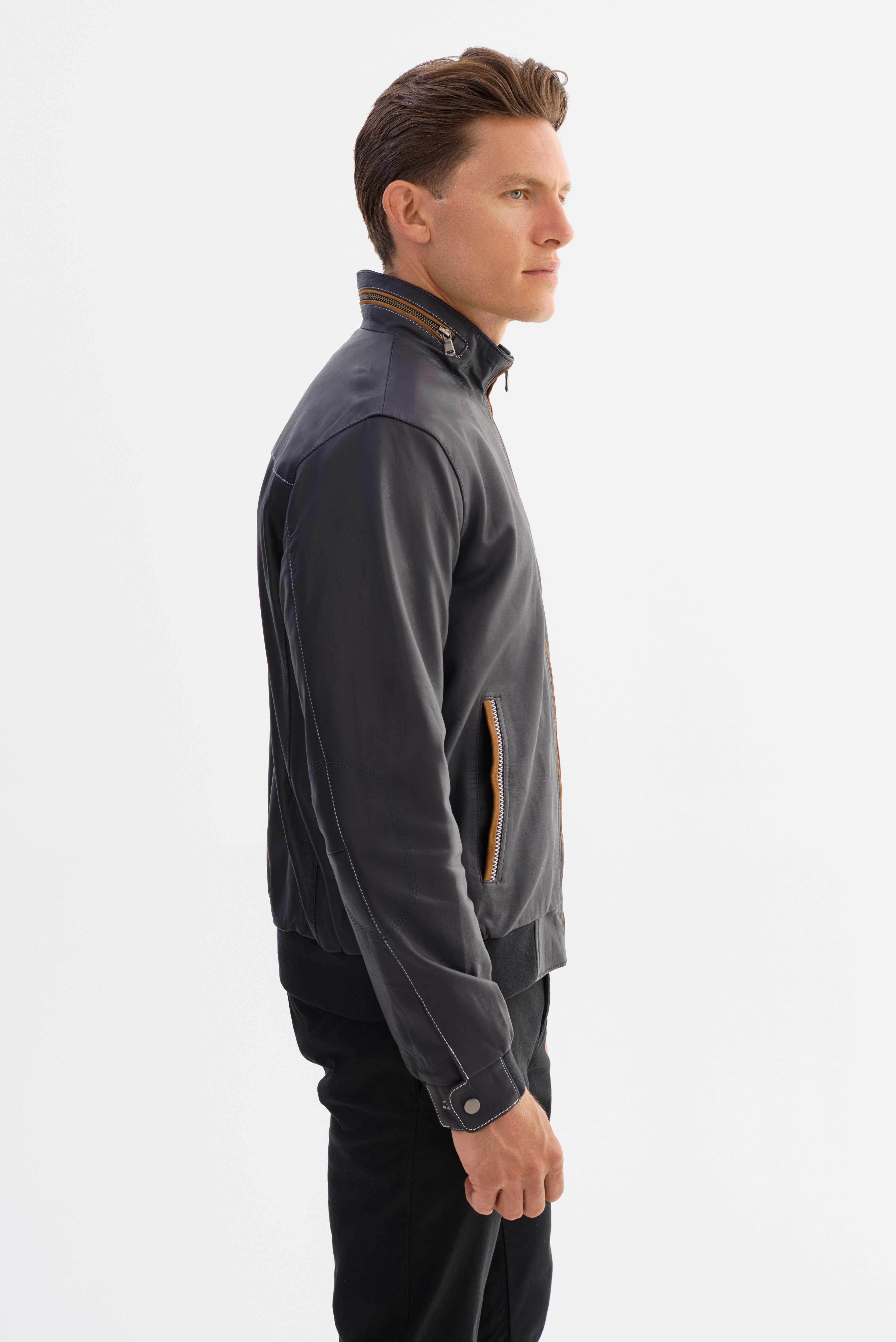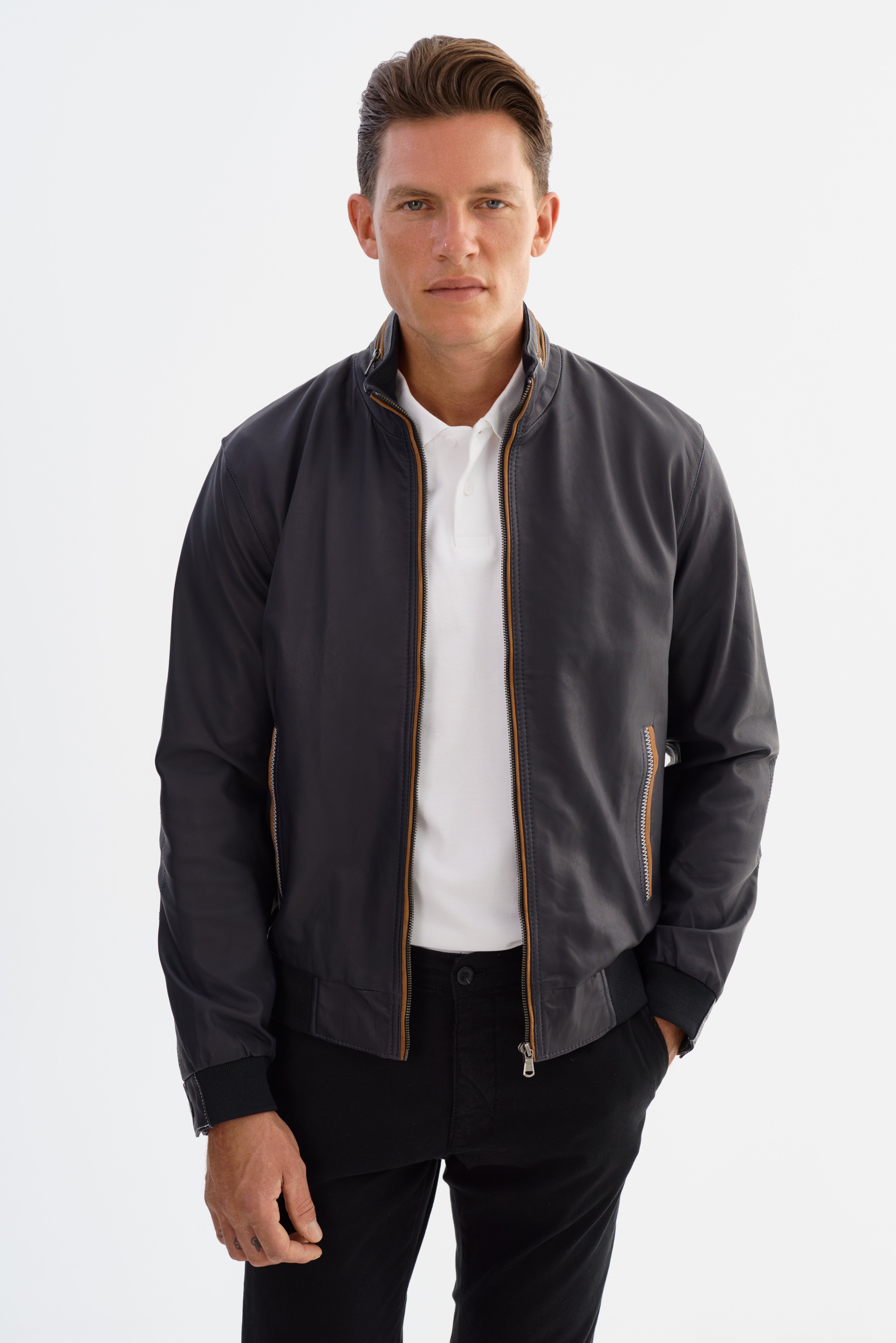The MUNICH Leather Jacket brings a refined, modern attitude to an everyday essential. Crafted from smooth lamb leather, it has a clean, polished finish that feels elevated yet easy to wear. The minimalist design keeps the look sharp and versatile, with a stand collar, front zip closure and streamlined pockets that create a crisp silhouette. It is the kind of jacket that works with anything, whether you are heading out for dinner or keeping it casual during the day.
