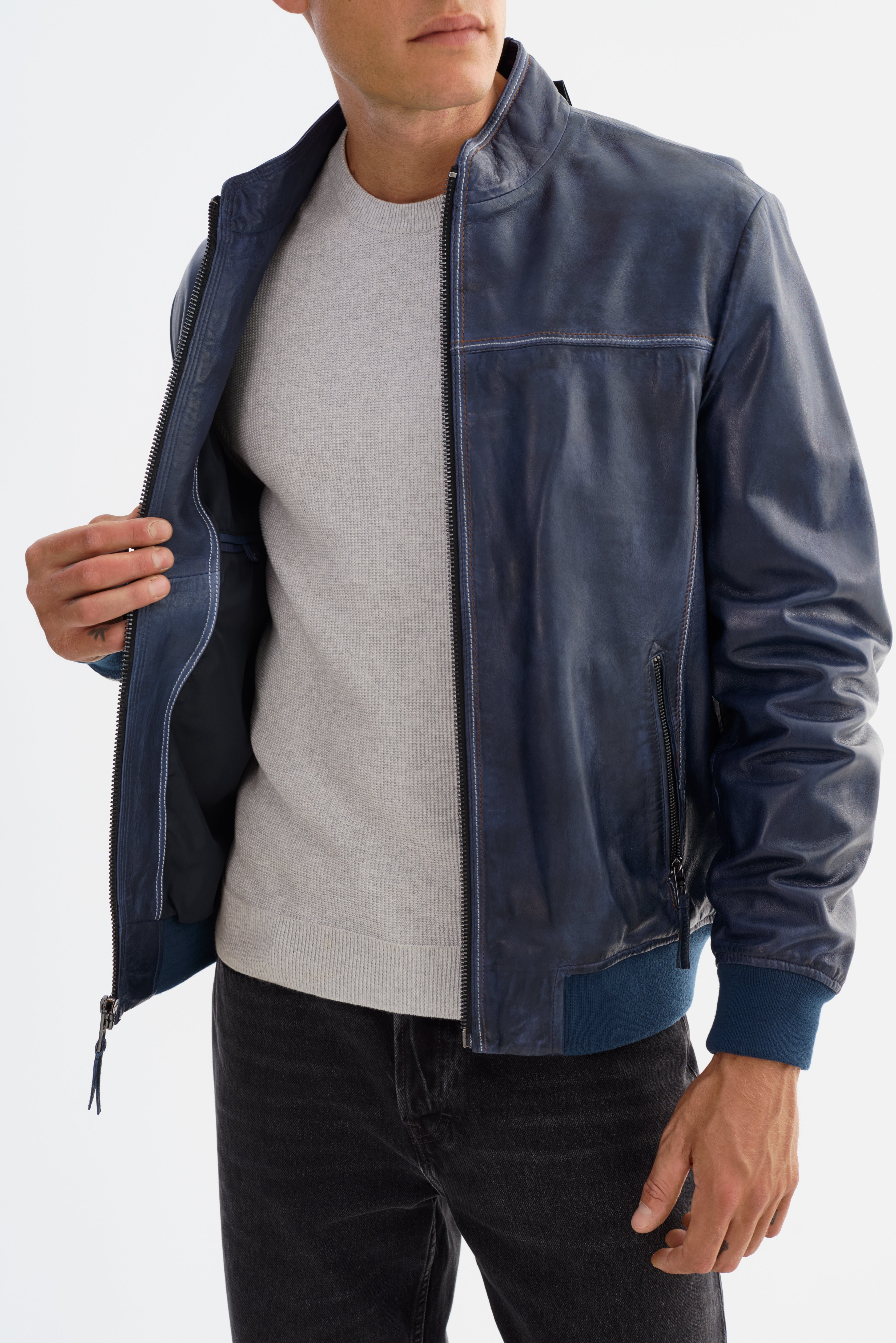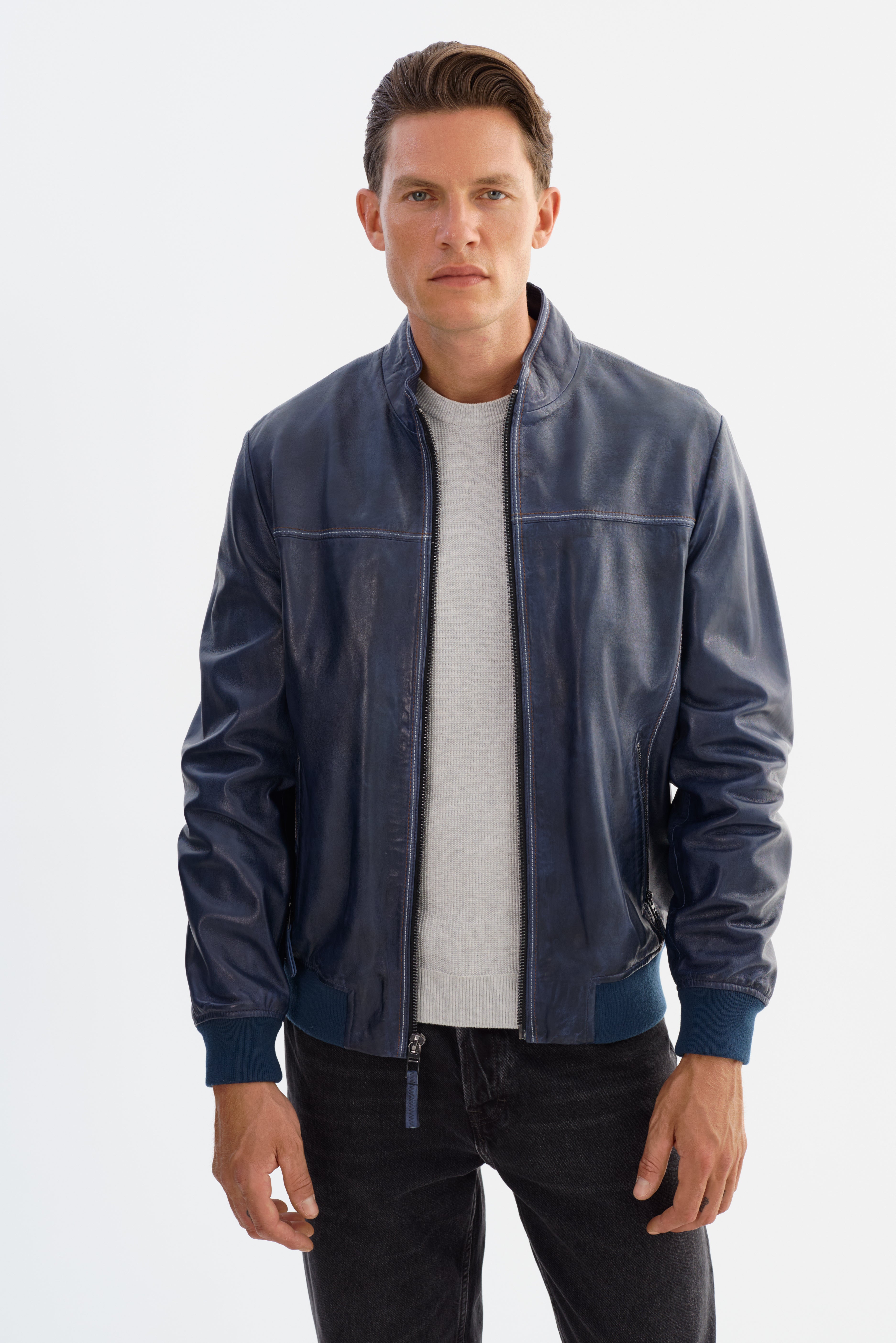 The NARDO Leather Bomber Jacket is a modern essential with a sharp, understated edge. Crafted from smooth leather, it features a straight collar and a streamlined fit that delivers both polish and ease. Ribbed hems offer a subtle nod to classic bomber styling, while minimalist detailing keeps the look elevated. Whether worn with denim or layered over tailored staples, the NARDO brings timeless versatility to any wardrobe.