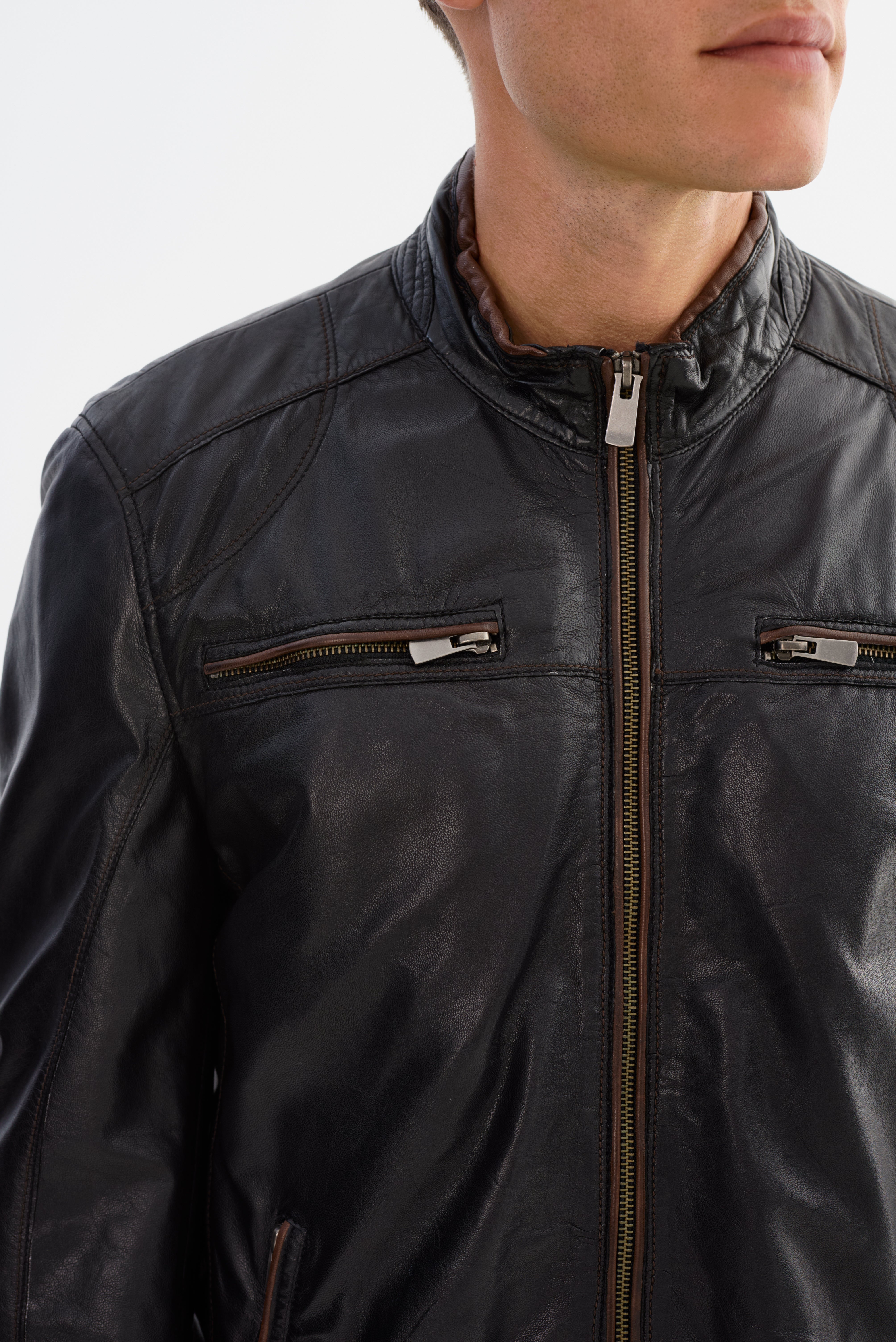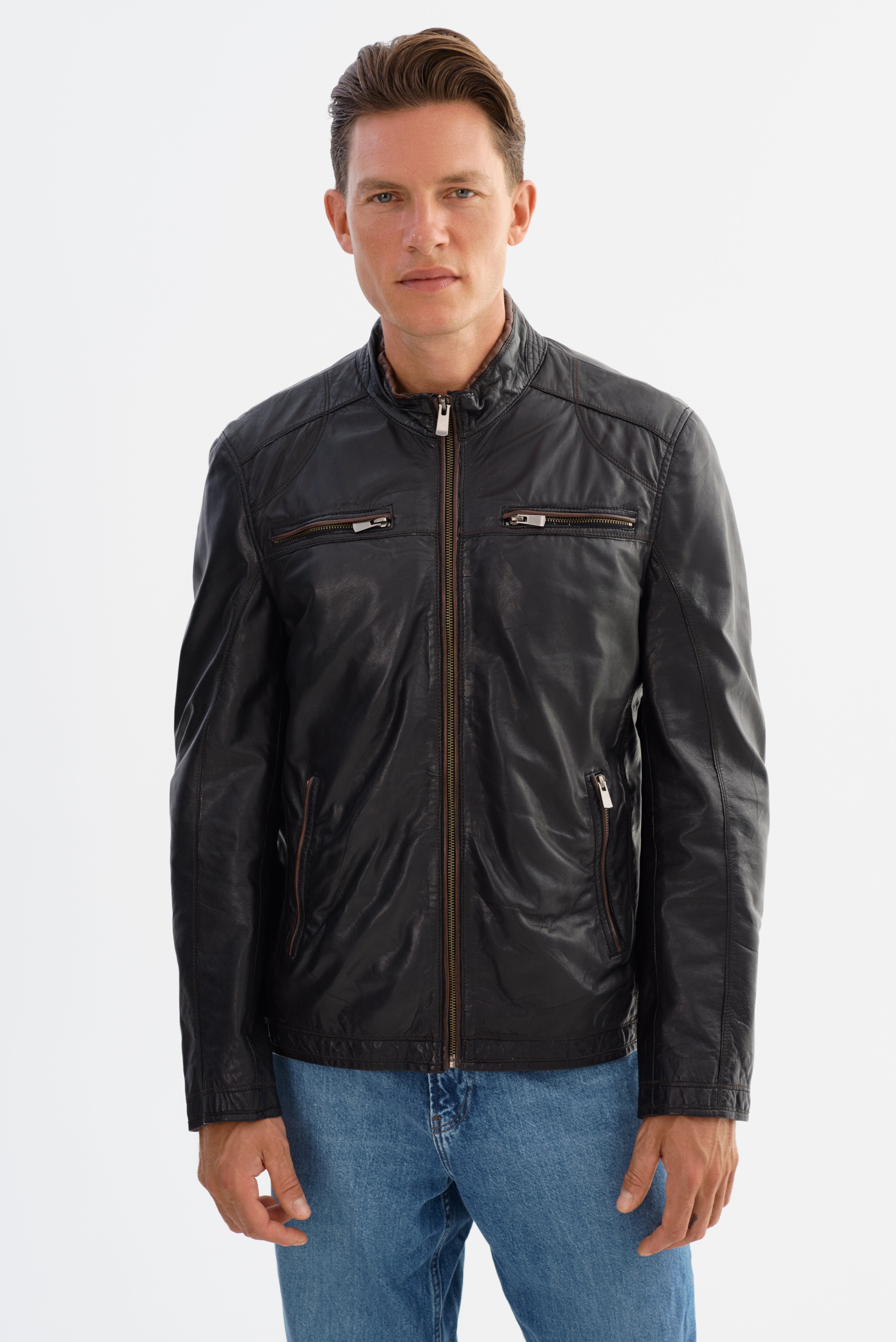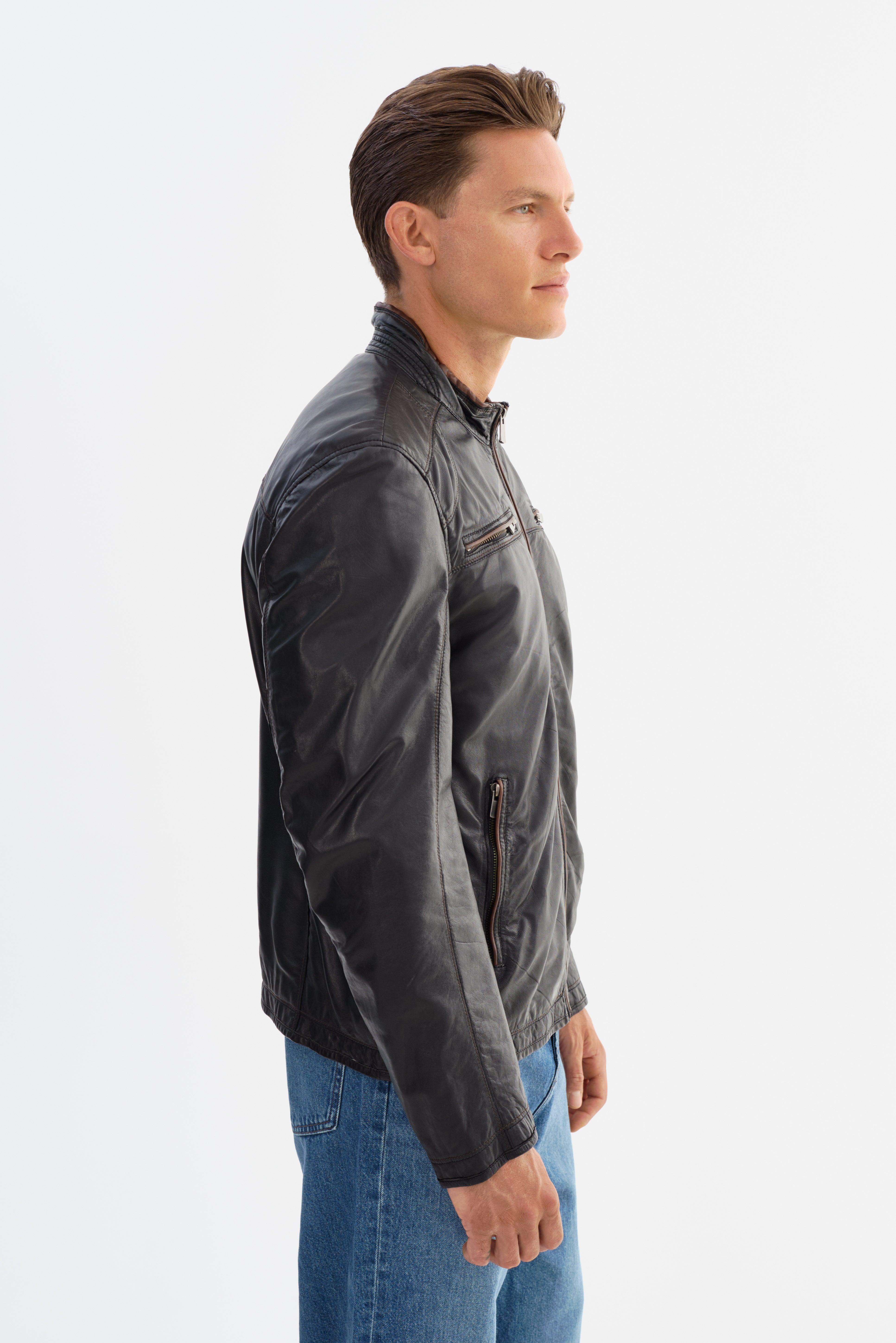 The PHIL Leather Jacket blends rugged sophistication with effortless style. Crafted from 100% Lamb Coast Leather, it features a sleek, structured silhouette that exudes confidence. Its stand-up collar and streamlined zippered pockets add a contemporary edge, while the quilted interior ensures comfort without compromising style. Whether dressed up or down, this jacket is designed to elevate any look.
