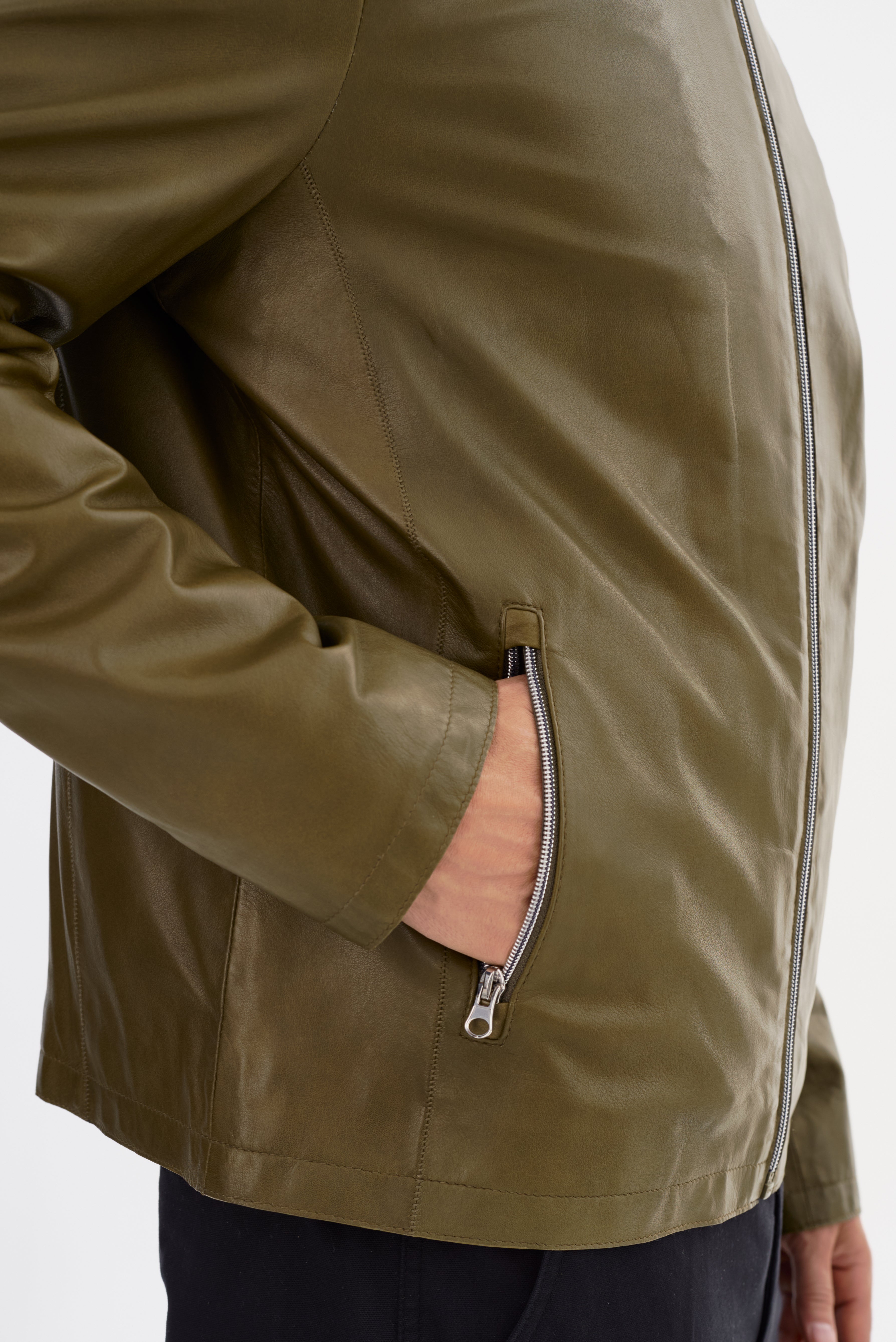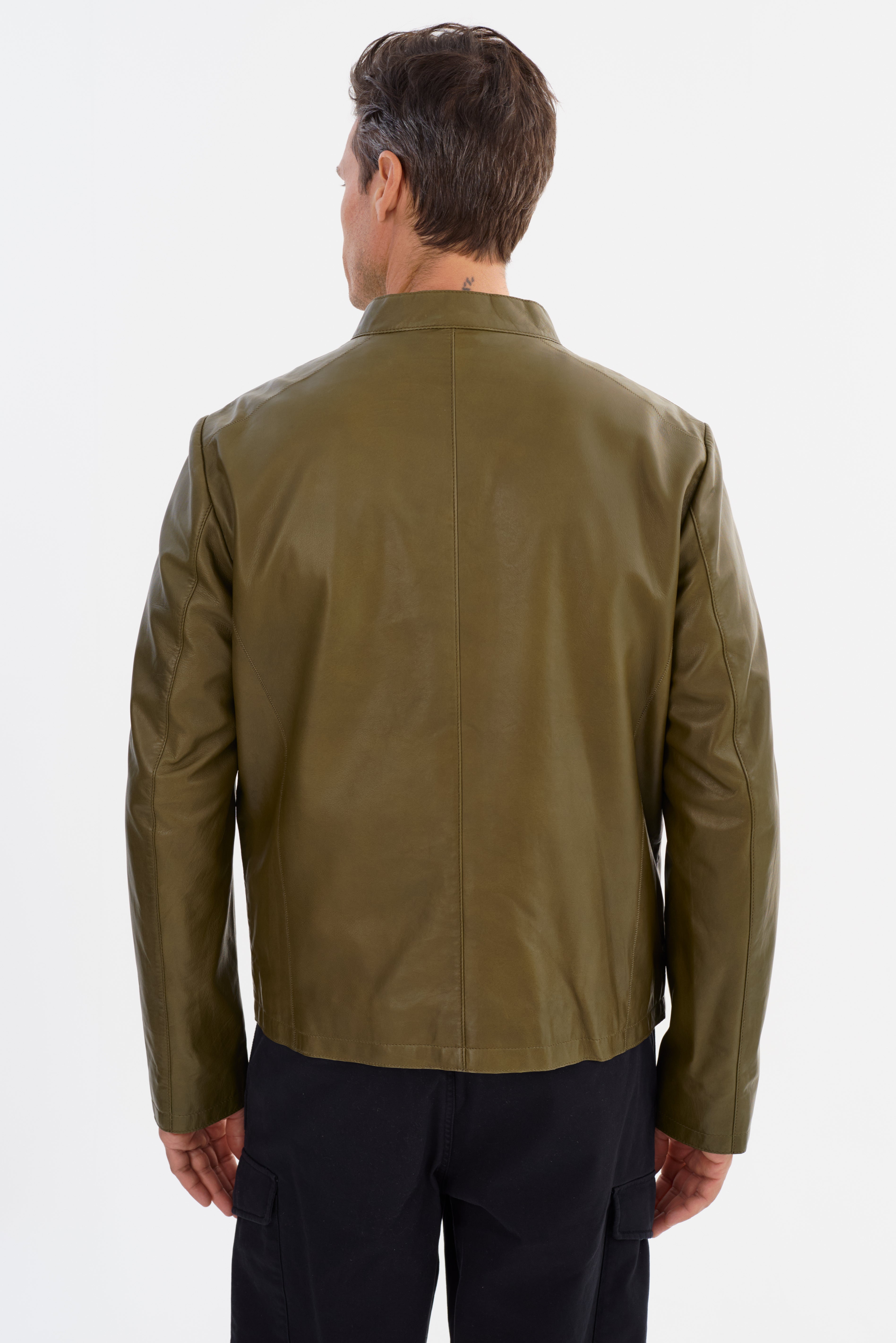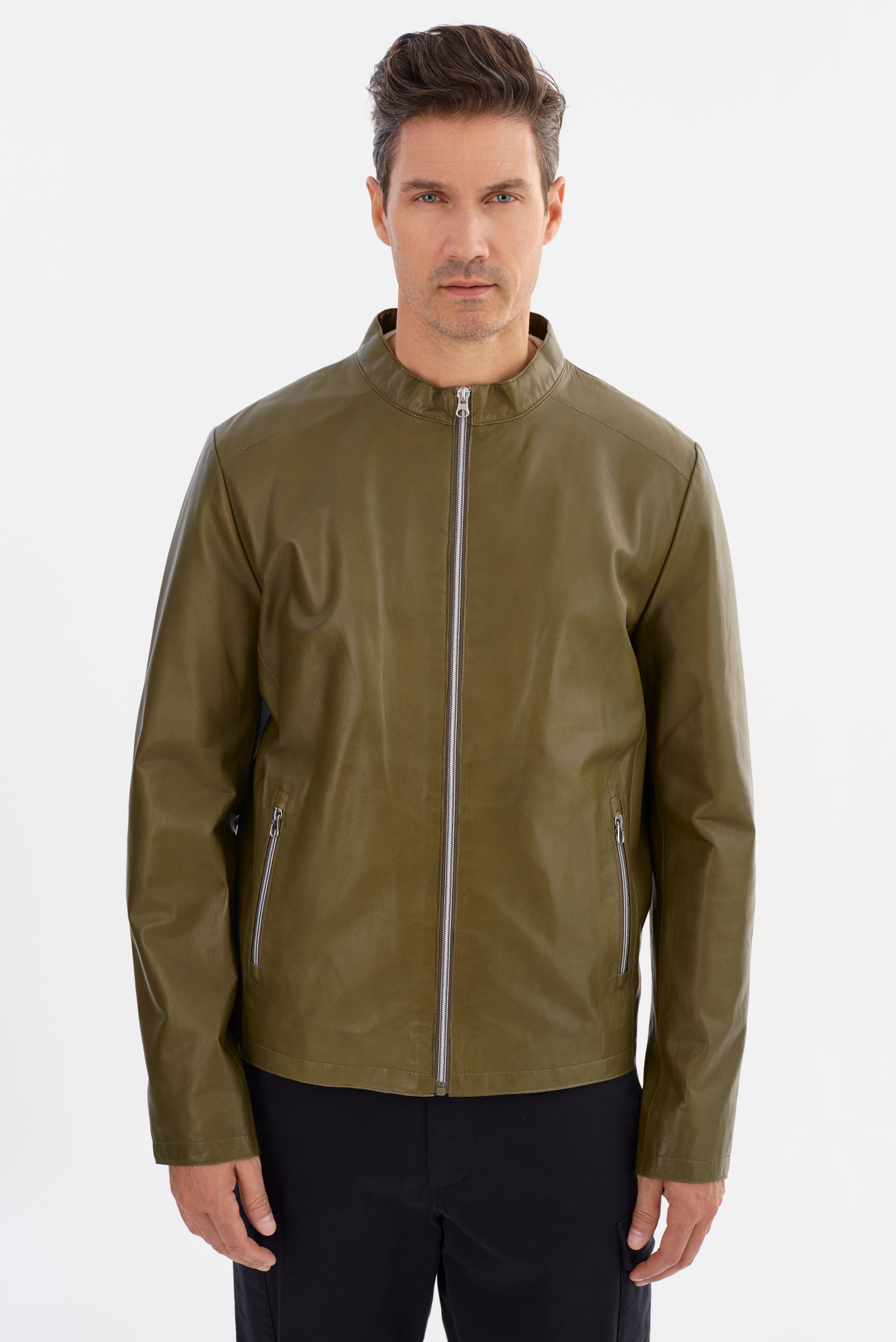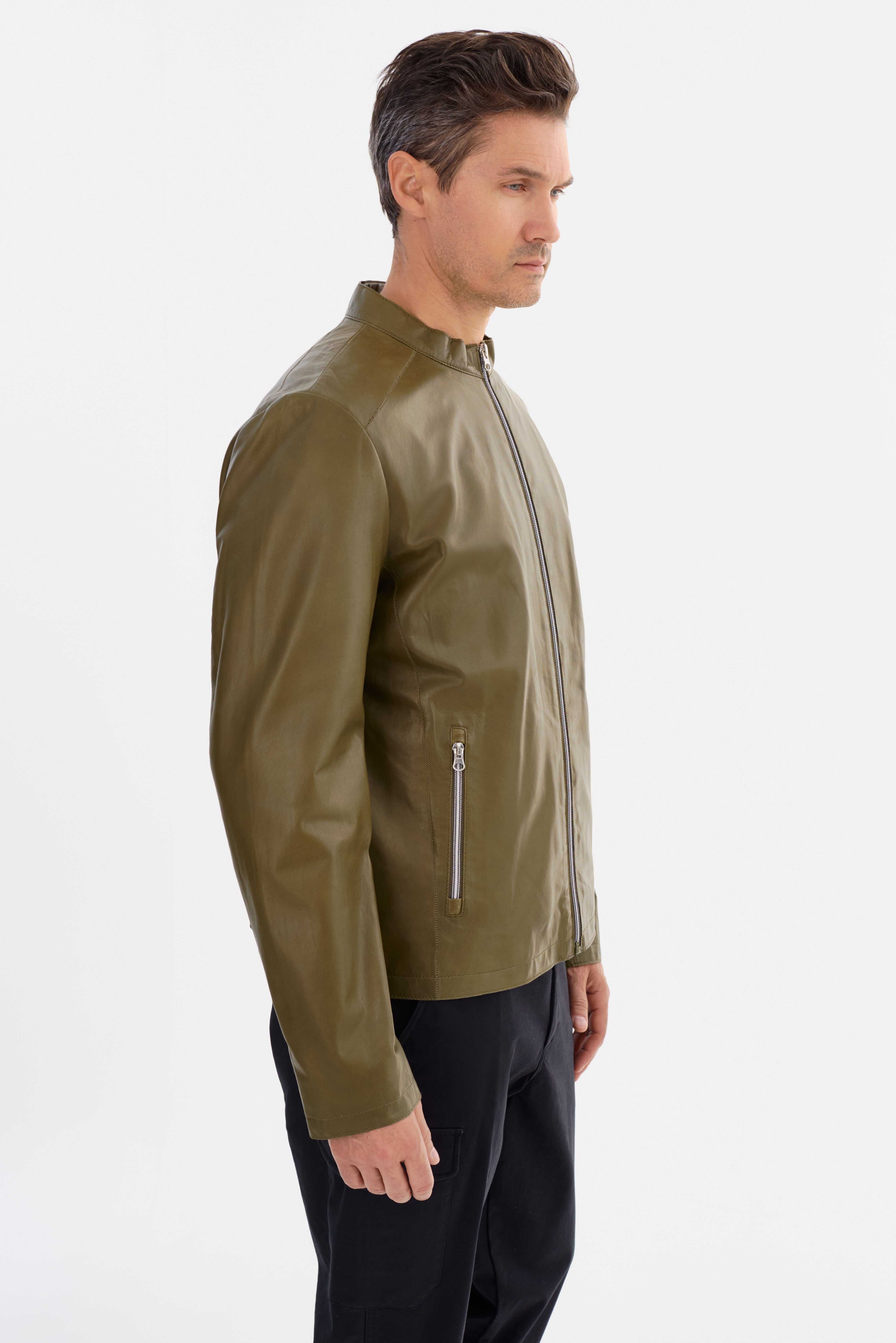 The SALLAMAN Leather Jacket is designed for a sleek and polished look. Made from premium leather, it features a modern, streamlined silhouette with a stand collar and full-zip front closure for a refined finish. The zippered side pockets add both functionality and a sharp detail, while the clean-cut structure makes it easy to style for any occasion.